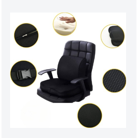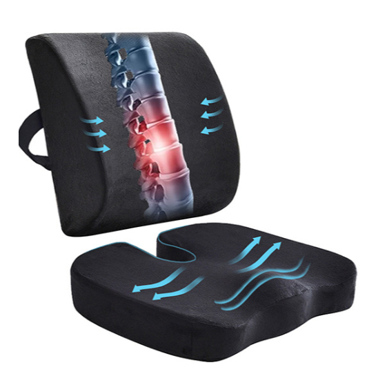 Kit Assento + Costas Almofada Espuma Memória Respirável Lombar Cadeira Ortopédico Motorista