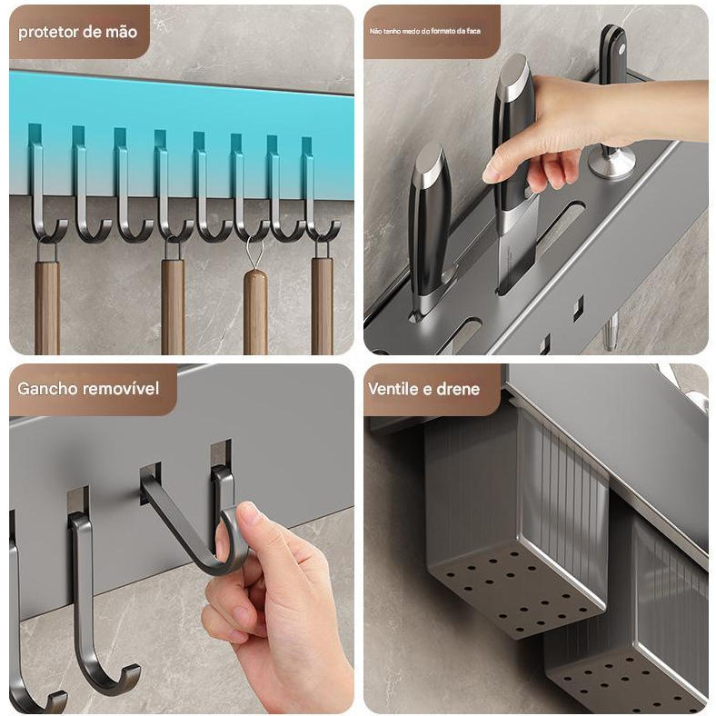 Suporte Rack Suspenso Facas Ganchos Talheres Utensílios Cozinha Parede Parafuso ref: ZGL-40/ZGL-50