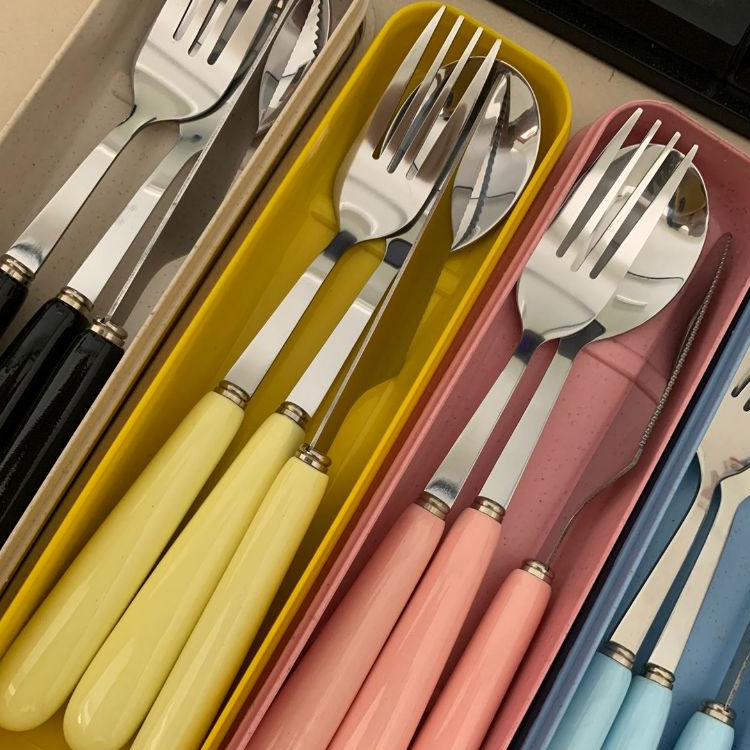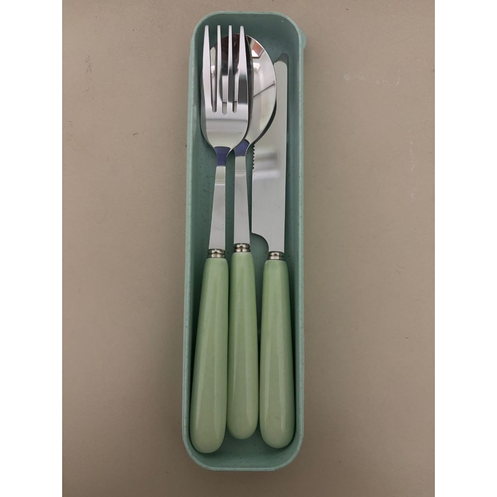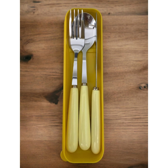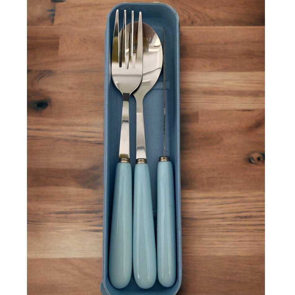 Jogo Conjunto Talher 3 Peças Inox Estojo Garfo Faca Marmita Viagem ref: XW-2