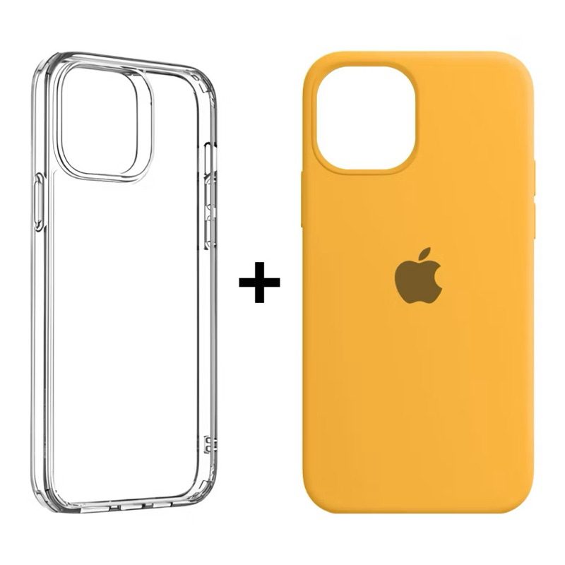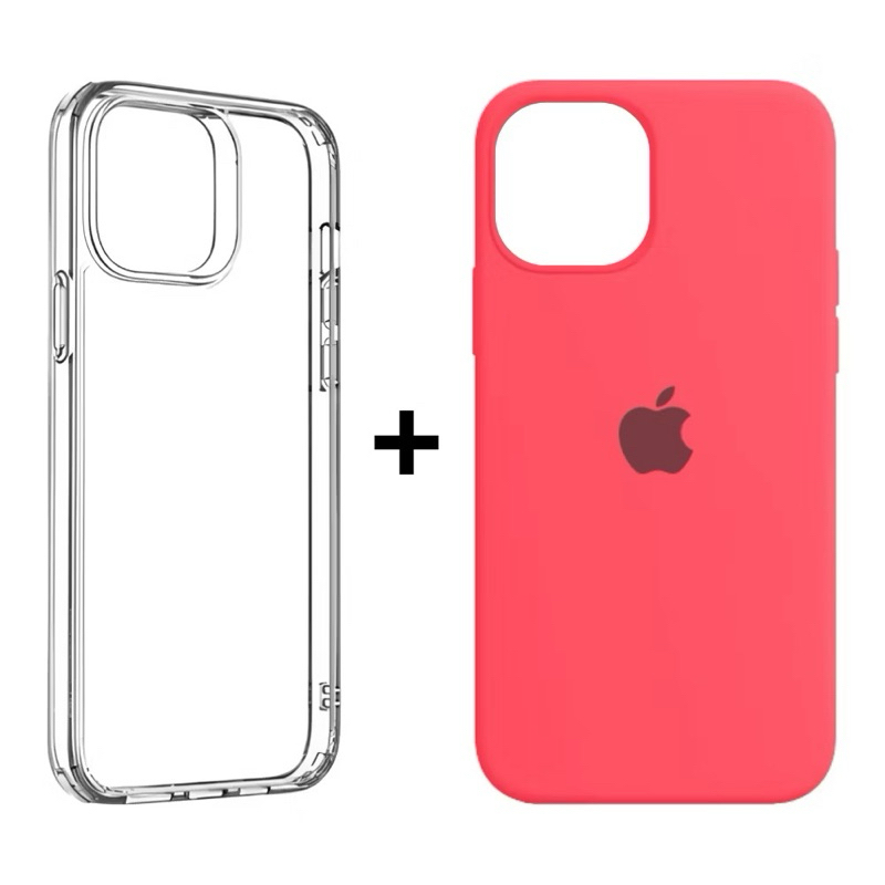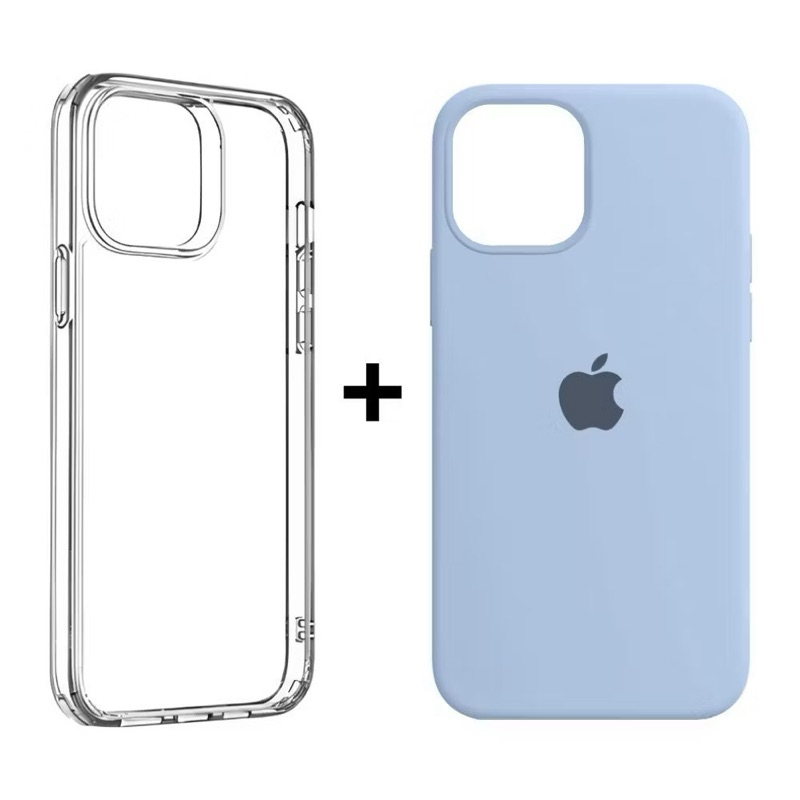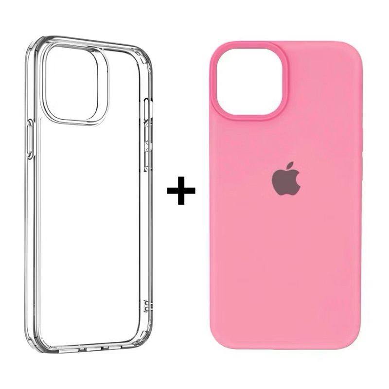 Kit 2 Capinhas Case Silicone Aveludada Colorida e acrílico Transparente para iphone 11 11pro 11promax