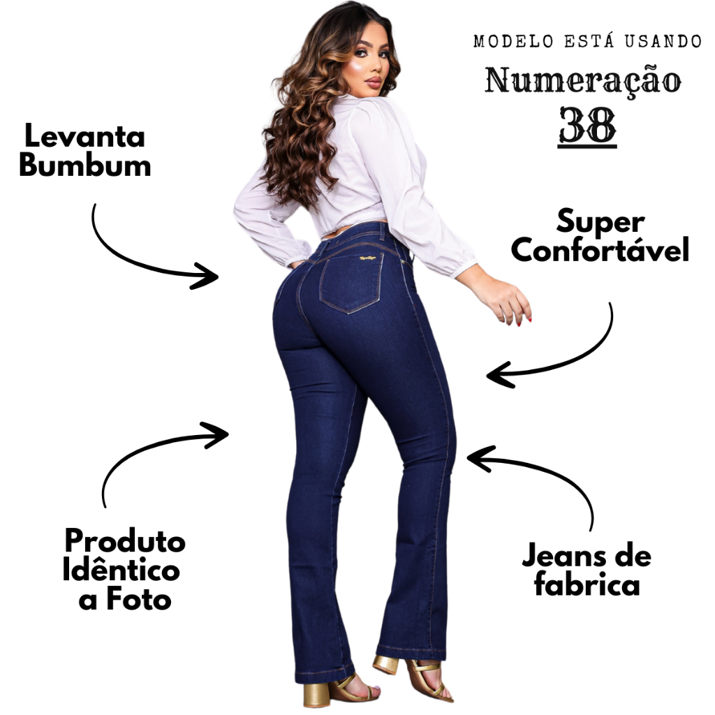 Kit 3 Calça Jeans Feminina Flare Cintura Alta Levanta Bumbum Com Lycra Elastano Casual Chique Boot