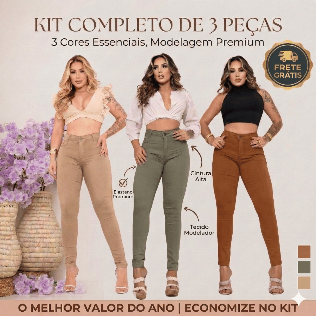 Kit 3 Calcas Jeans Feminina Cintura Alta Skinny Lycra Atacado Economico Basico Moda 2026