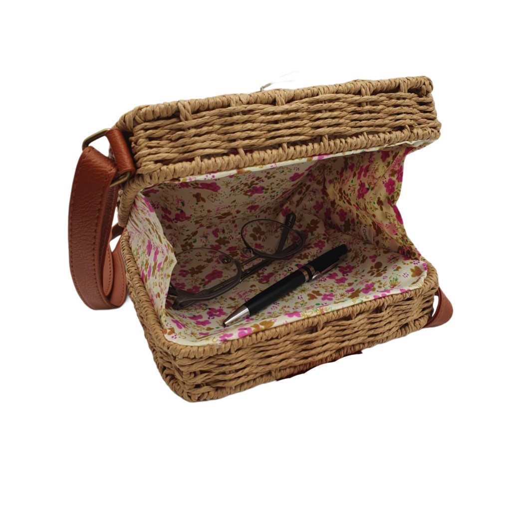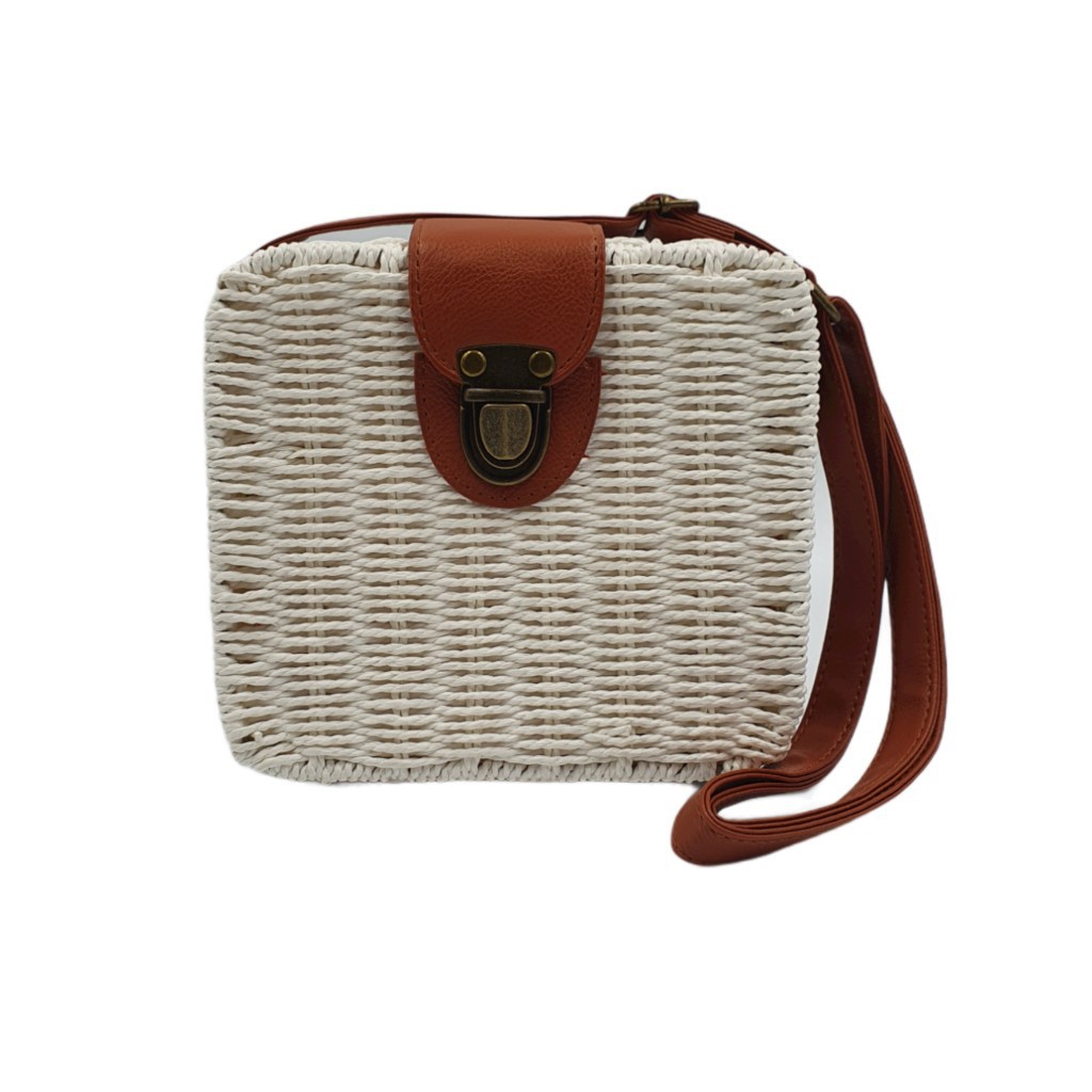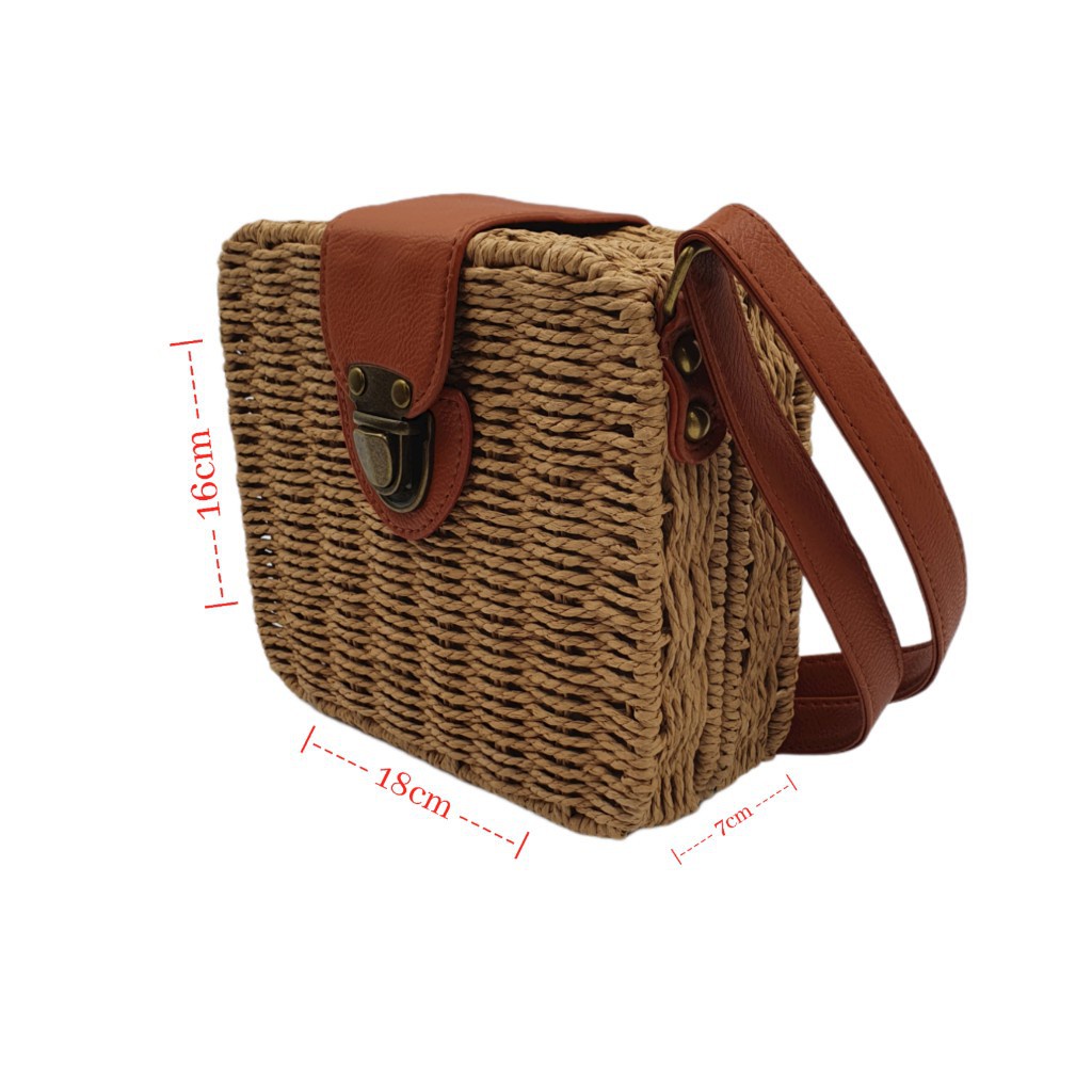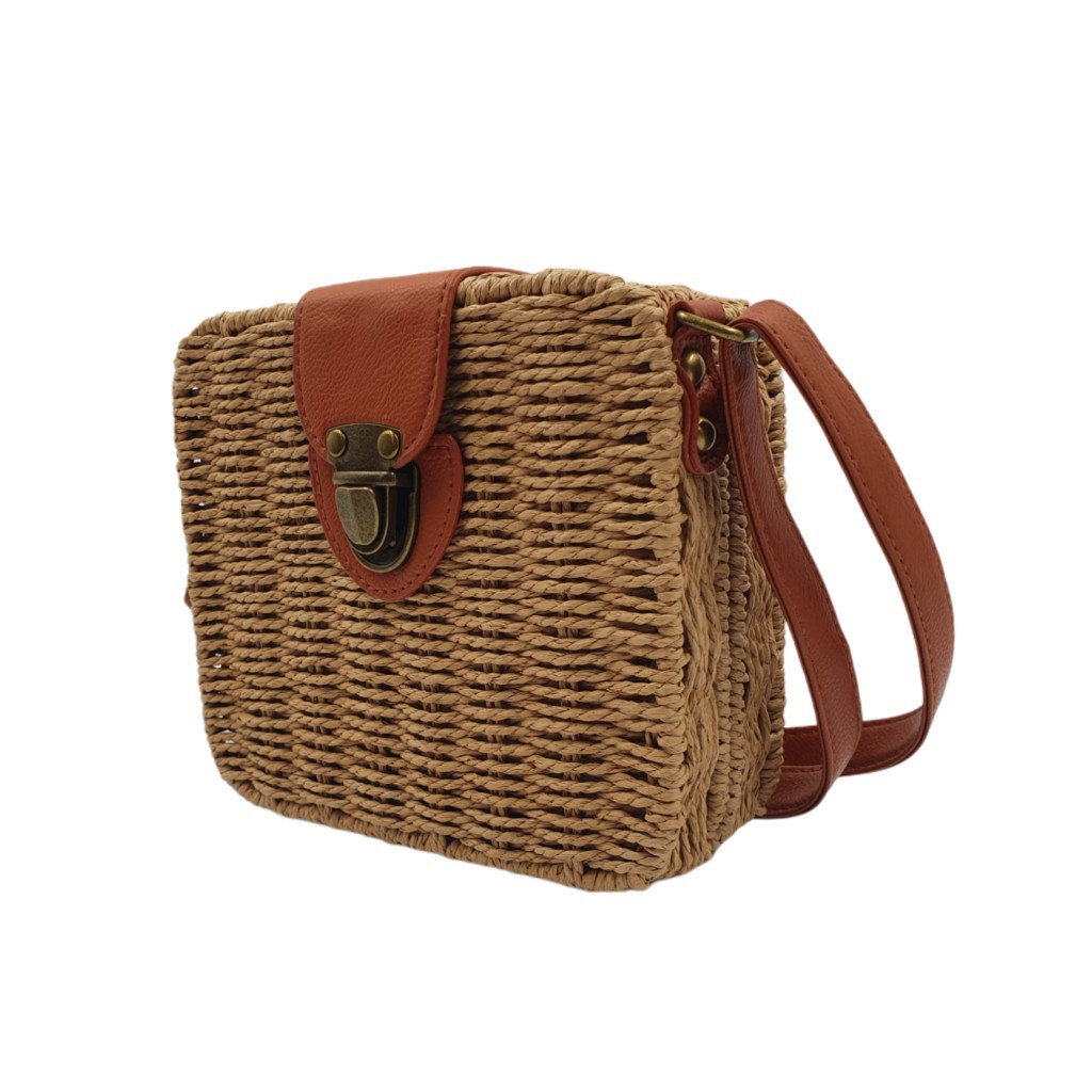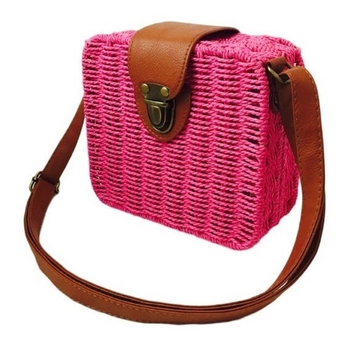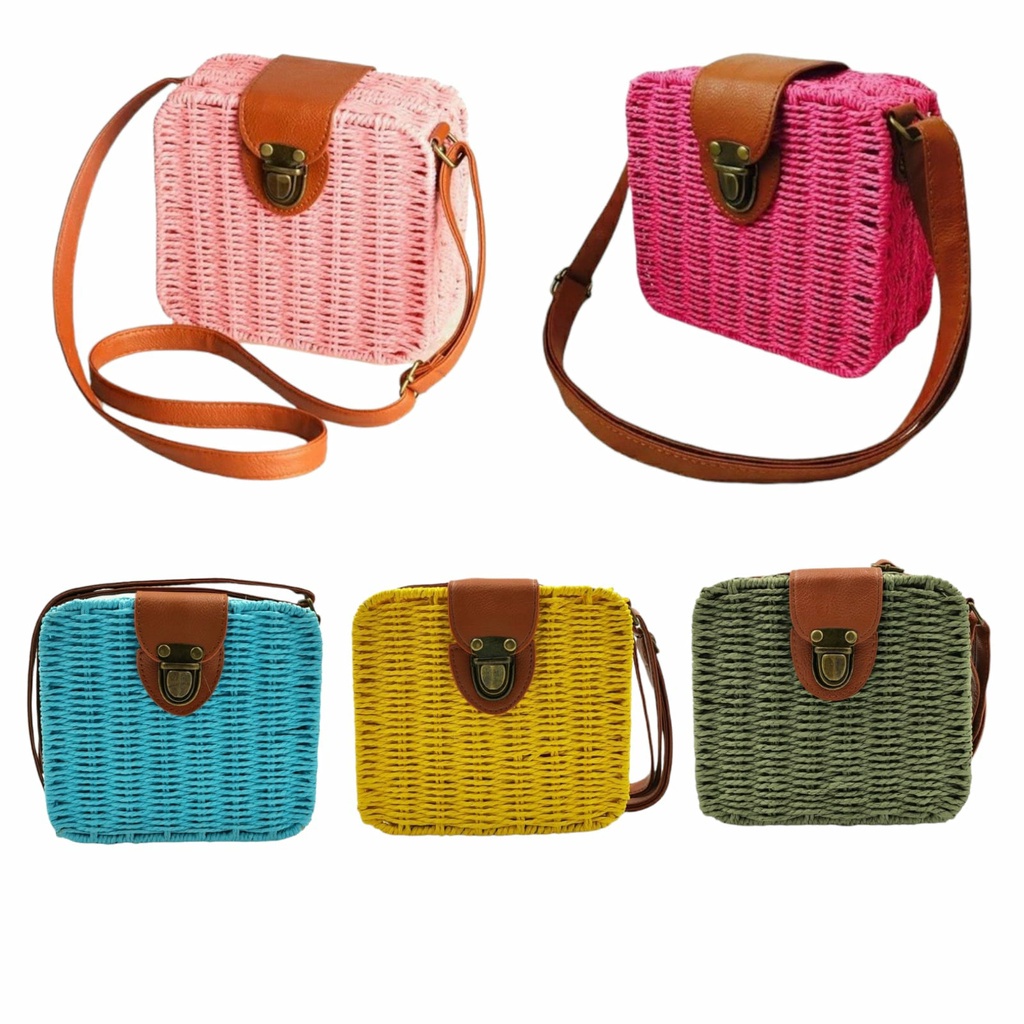 Bolsa QUADRADA Feminina Palha Sintética Moda Praia