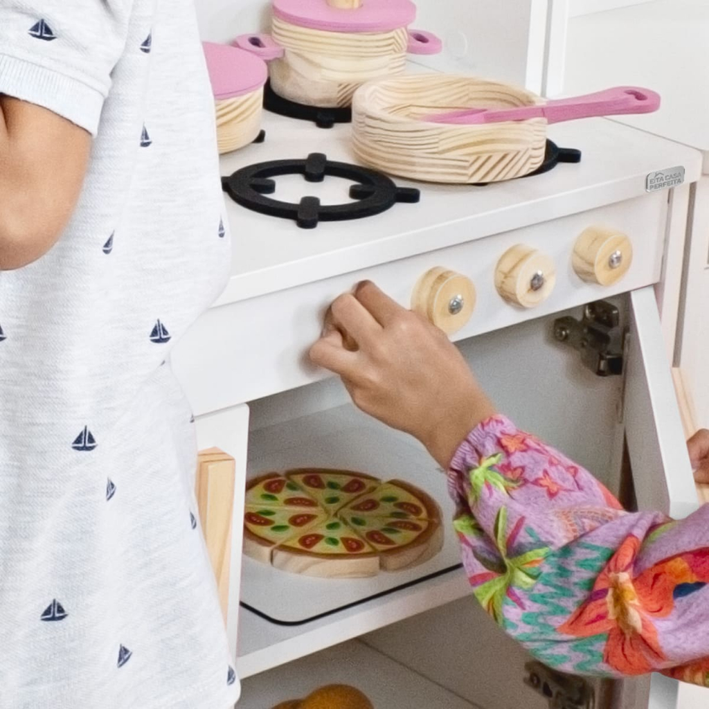 Cozinha Infantil Geladeira Máquina Lavar Madeira Branco Kit Educativo