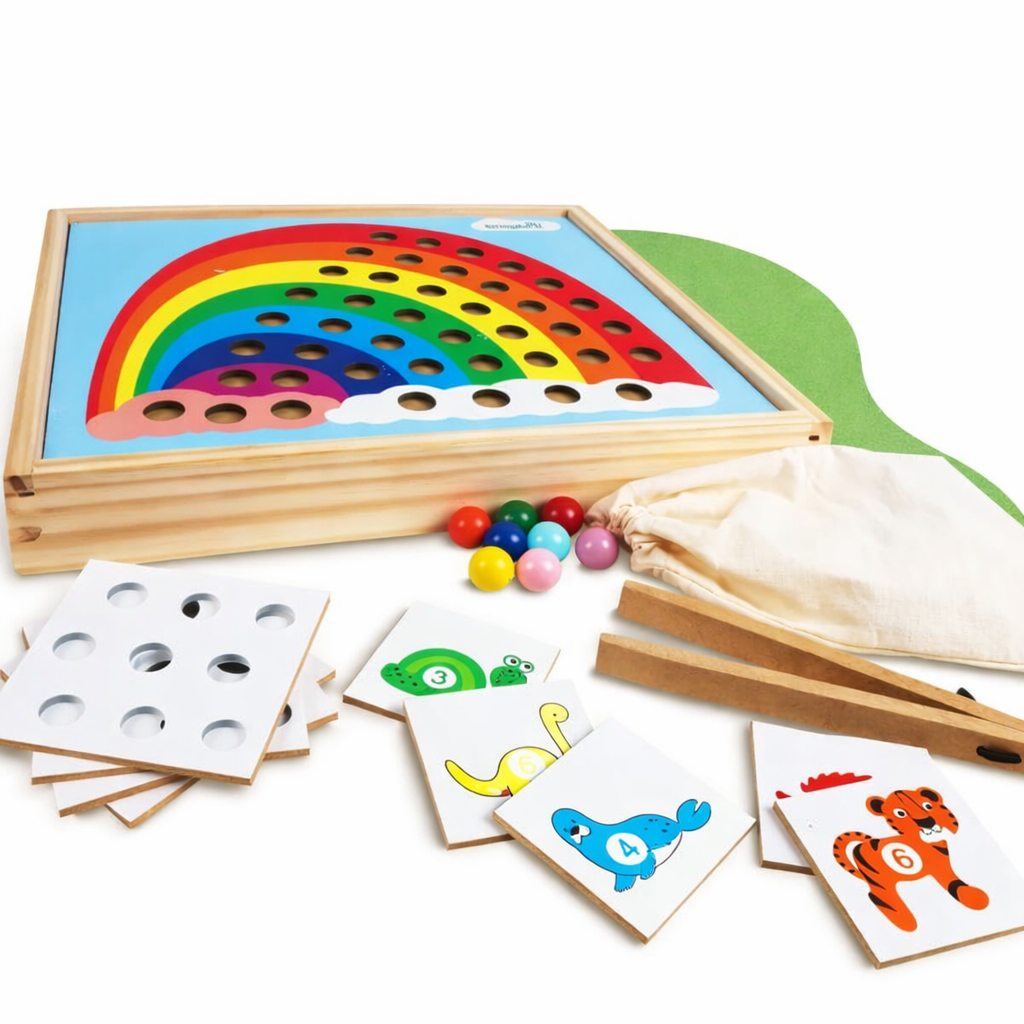 Bandeja Sensorial Arco-Íris Brinquedo Madeira Infantil Estímulo Sensorial Desenvolvimento Pedagógico