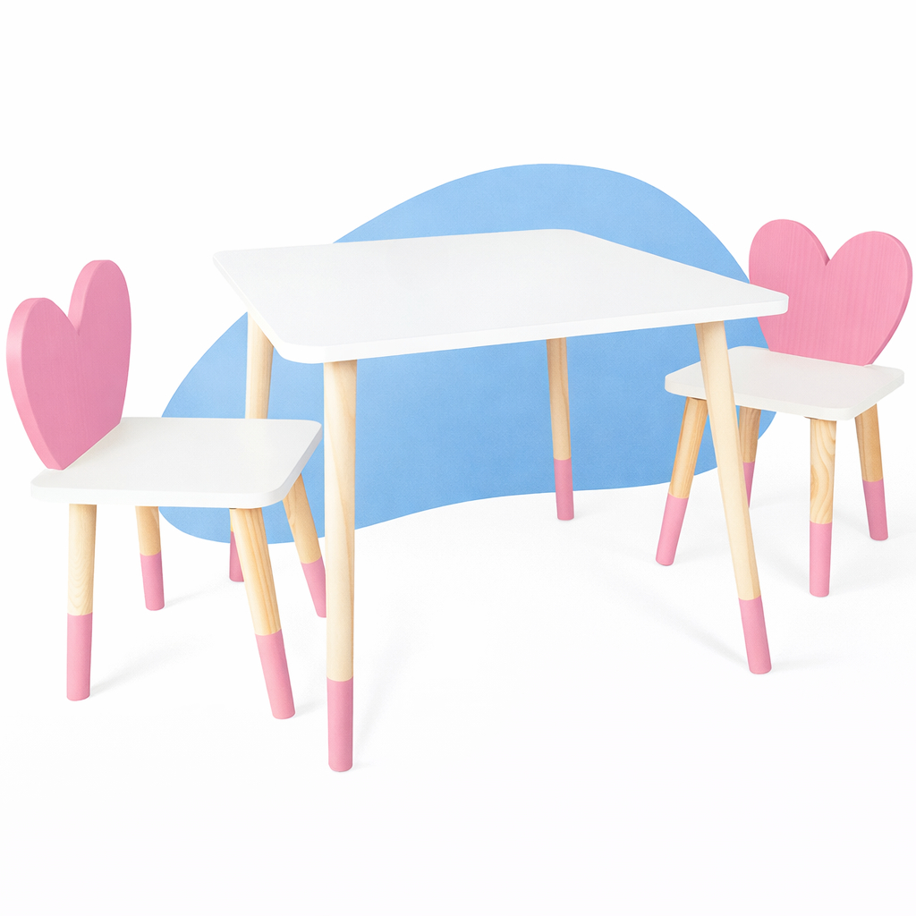 Mesa 2 Cadeiras Infantil Coração Madeira Brinquedo Pedagógico Kit Educativo