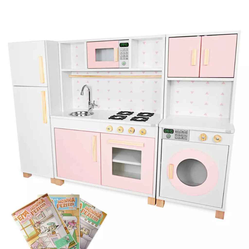 Cozinha Infantil Geladeira Máquina Lavar Madeira Brinquedo Kit Educativo