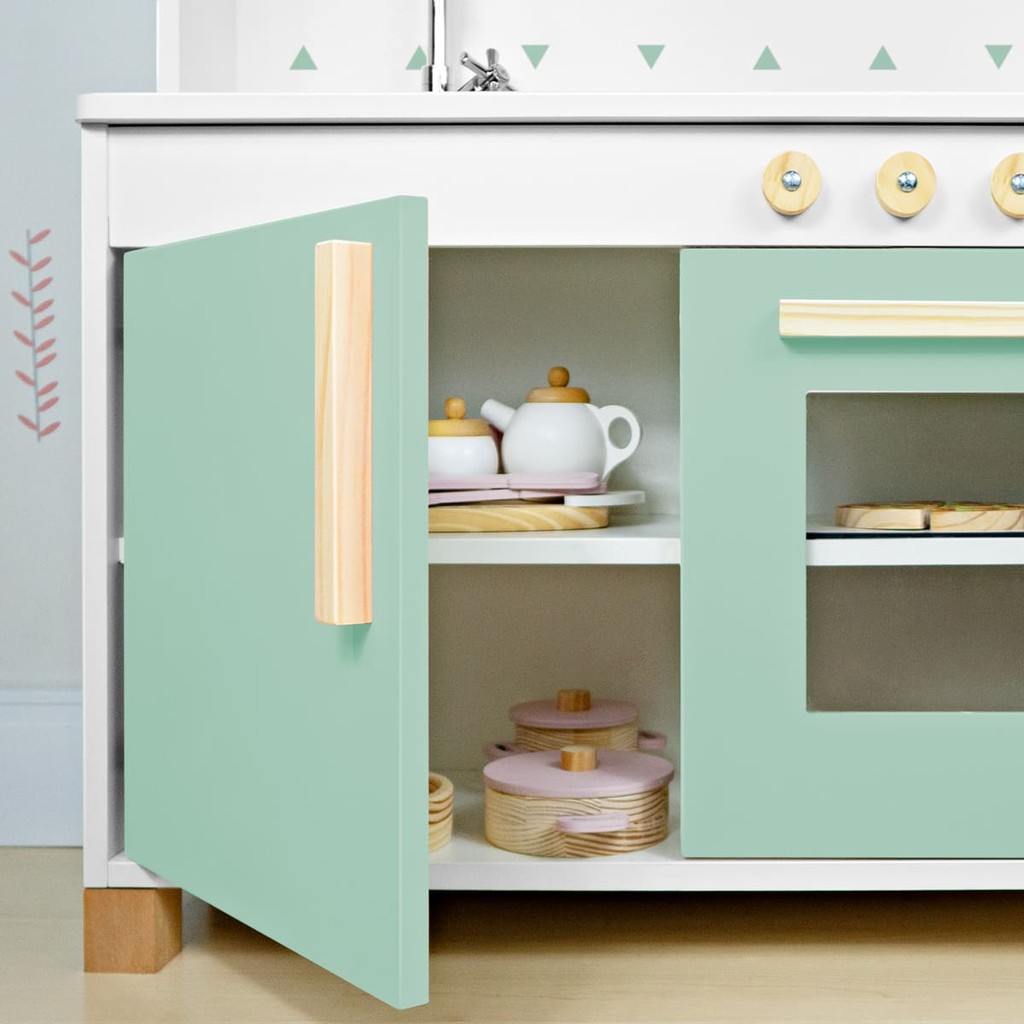 Kit Educativo Cozinha Infantil com Pia Fogão e Microondas - Verde Claro