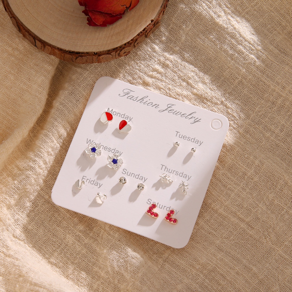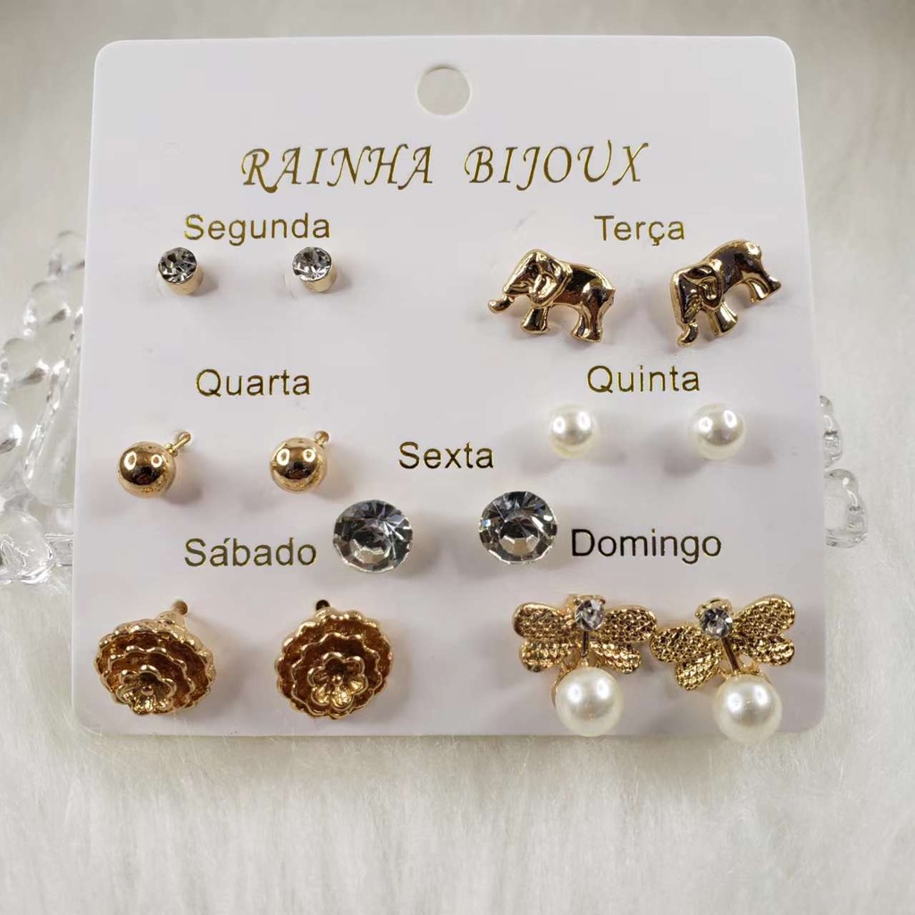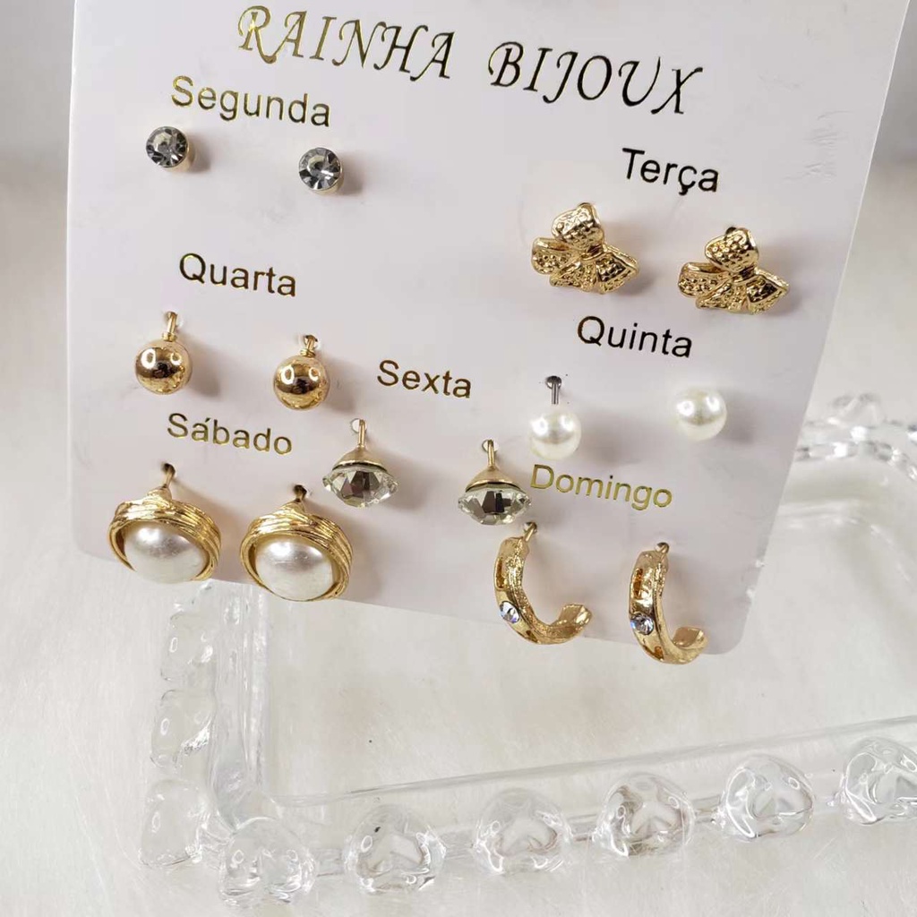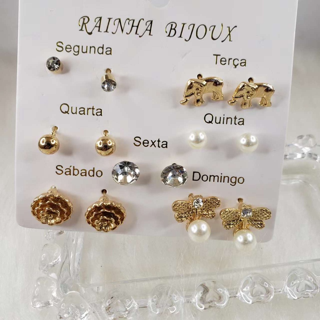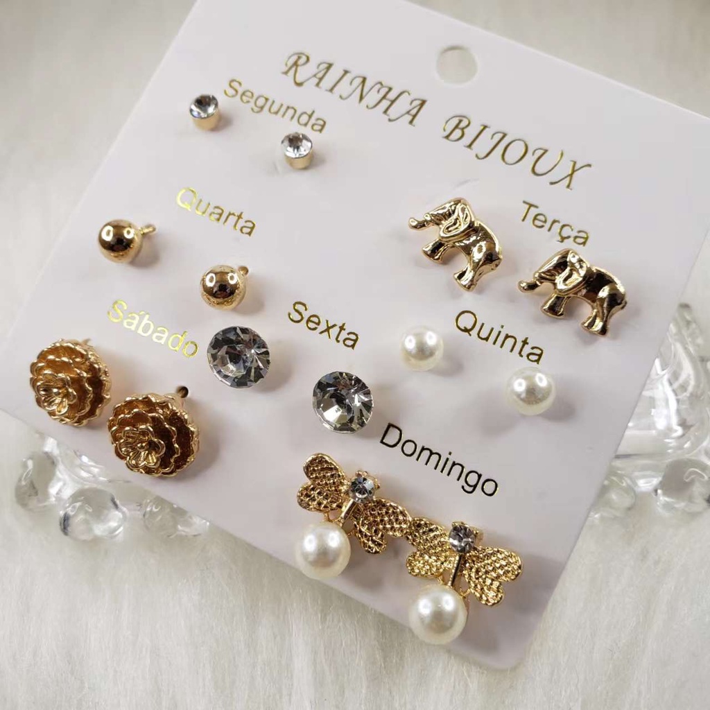 Brincos com gota de pérola e óleo de cinco estrelas, flor, amor, lua, coroa, multi estilo, 6 pares de conjunto para mulheres