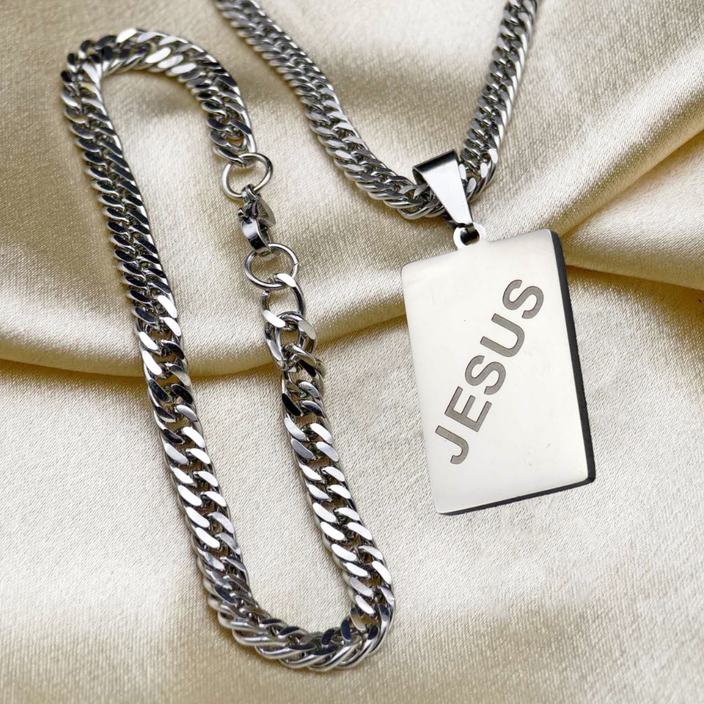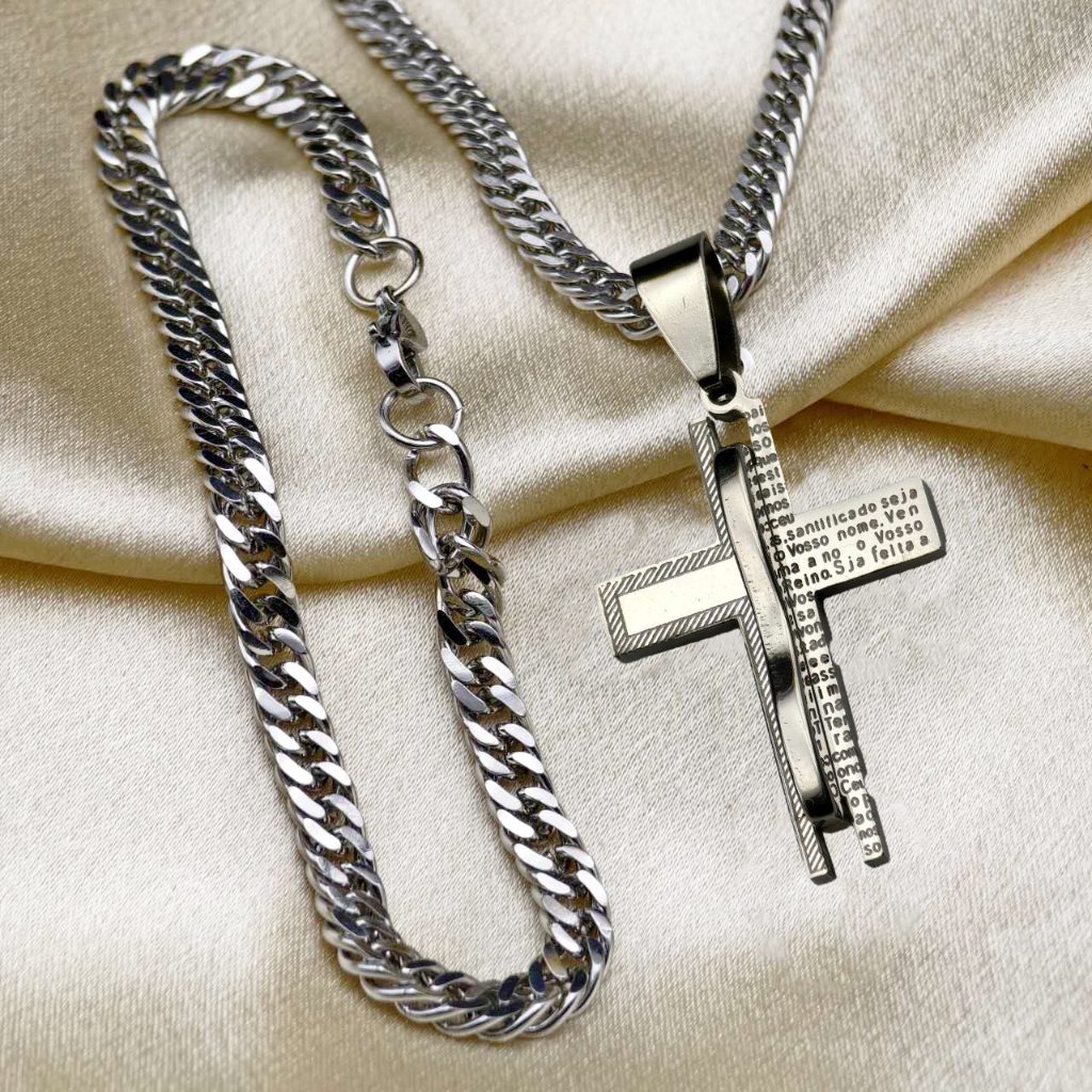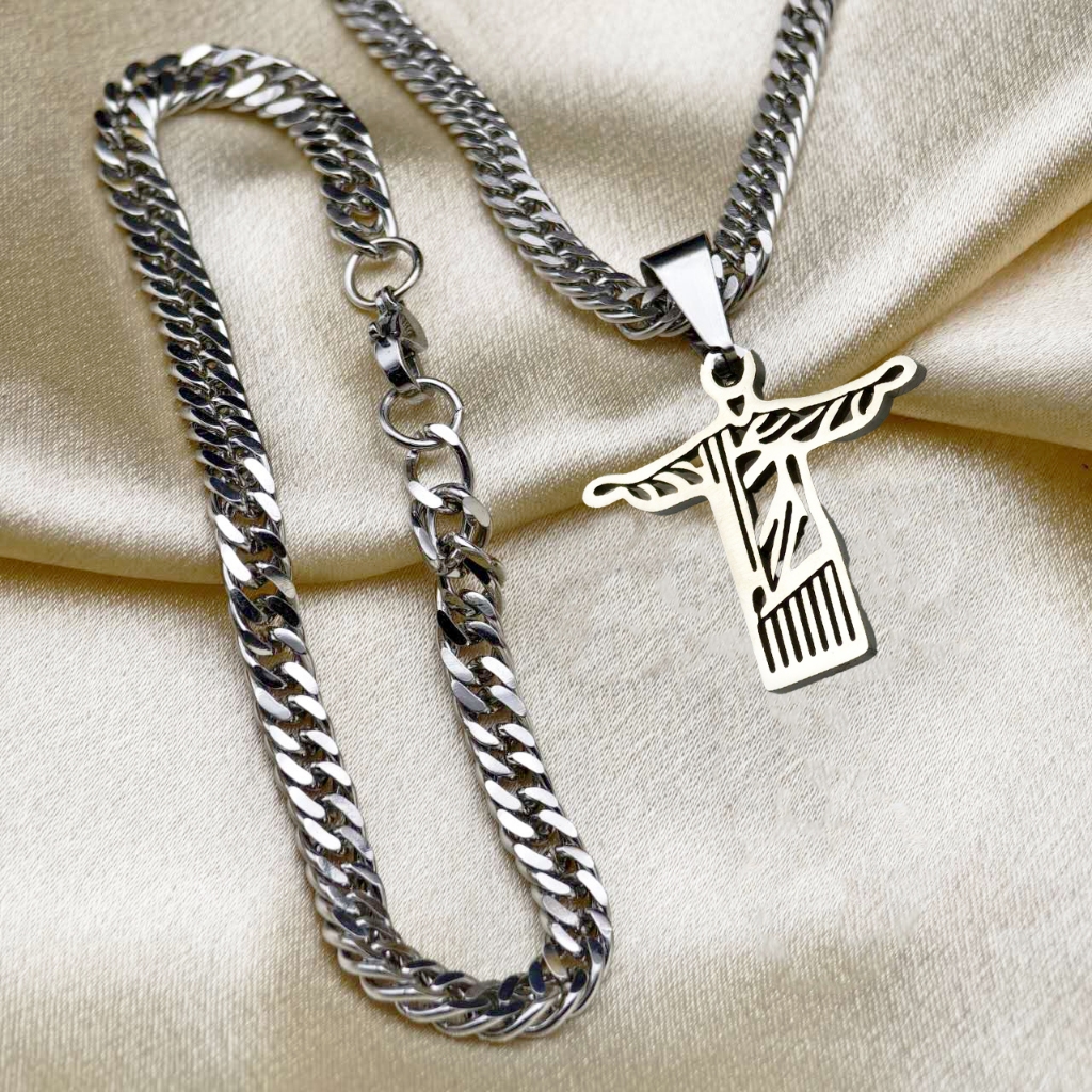 Cordão de Moeda Antiga Elegante Colar-Pulseira em Aço Inoxidável com Pingente de Jesus Banhado com