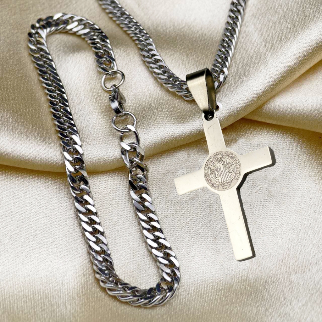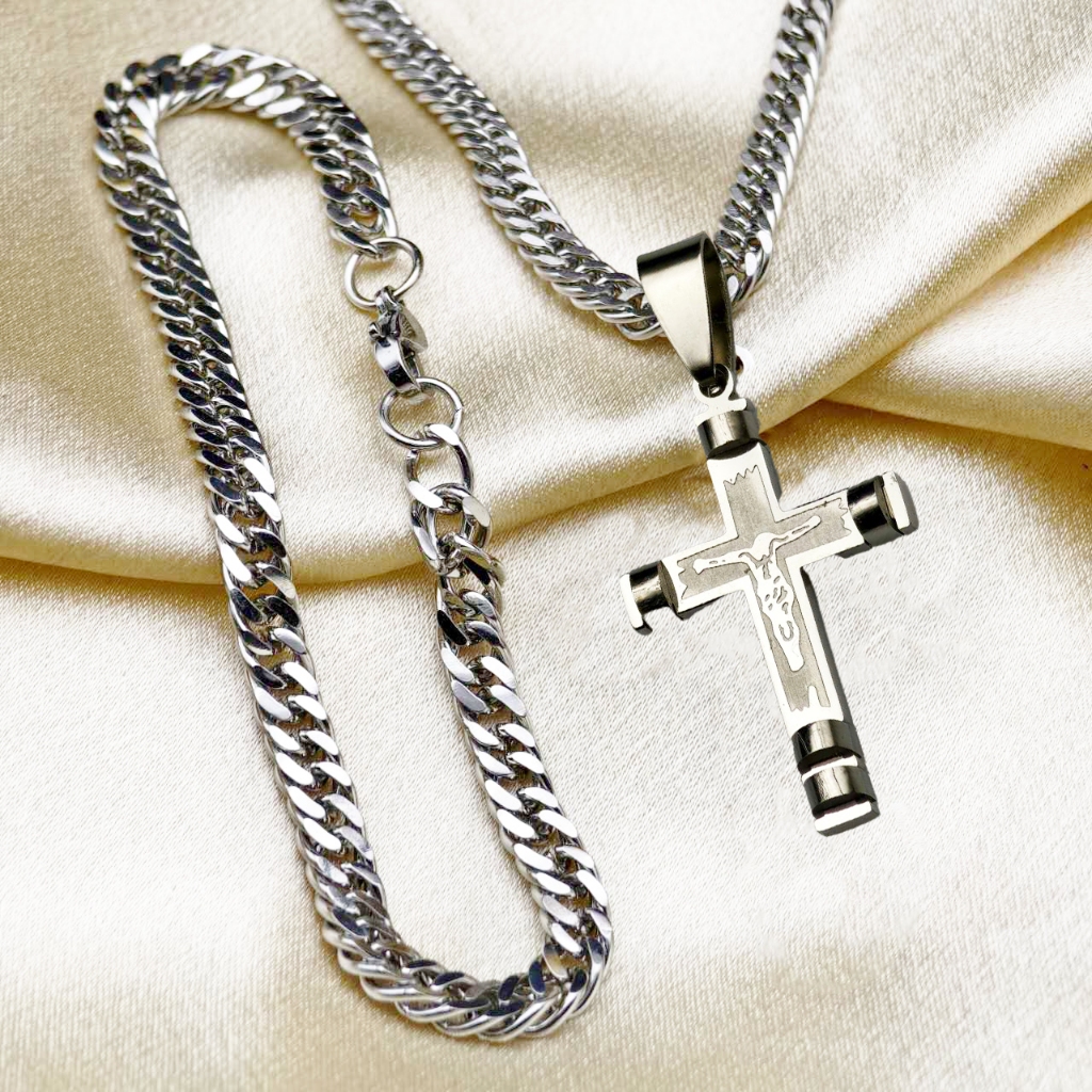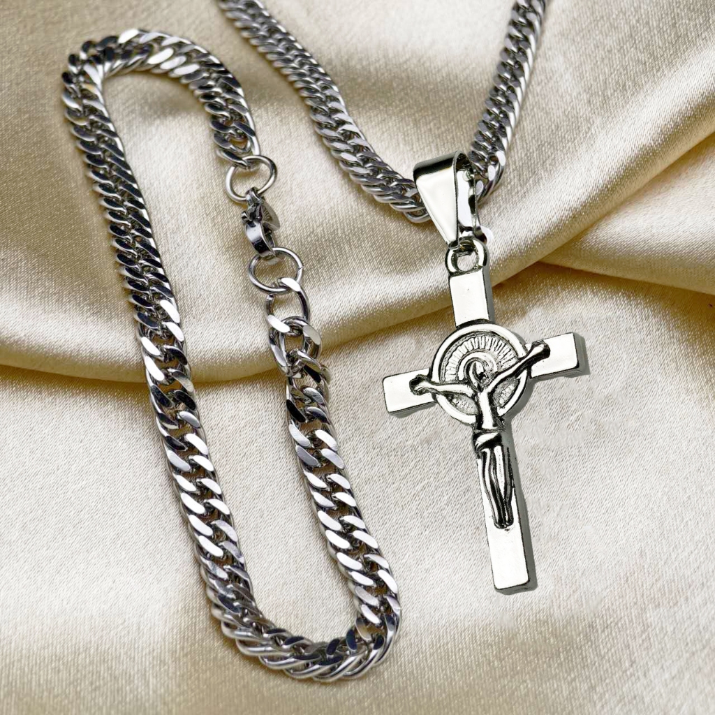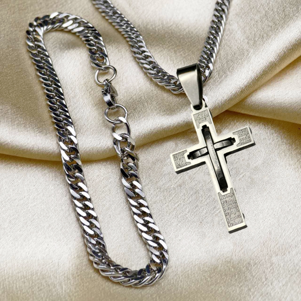 Cordão de Moeda Antiga Elegante Colar-Pulseira em Aço Inoxidável com Pingente de Jesus Banhado com