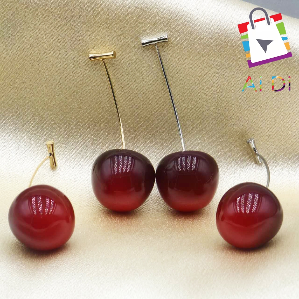 Um par de brincos e joias com pingente de cereja da moda em ouro e prata, perfeito - amigas presente