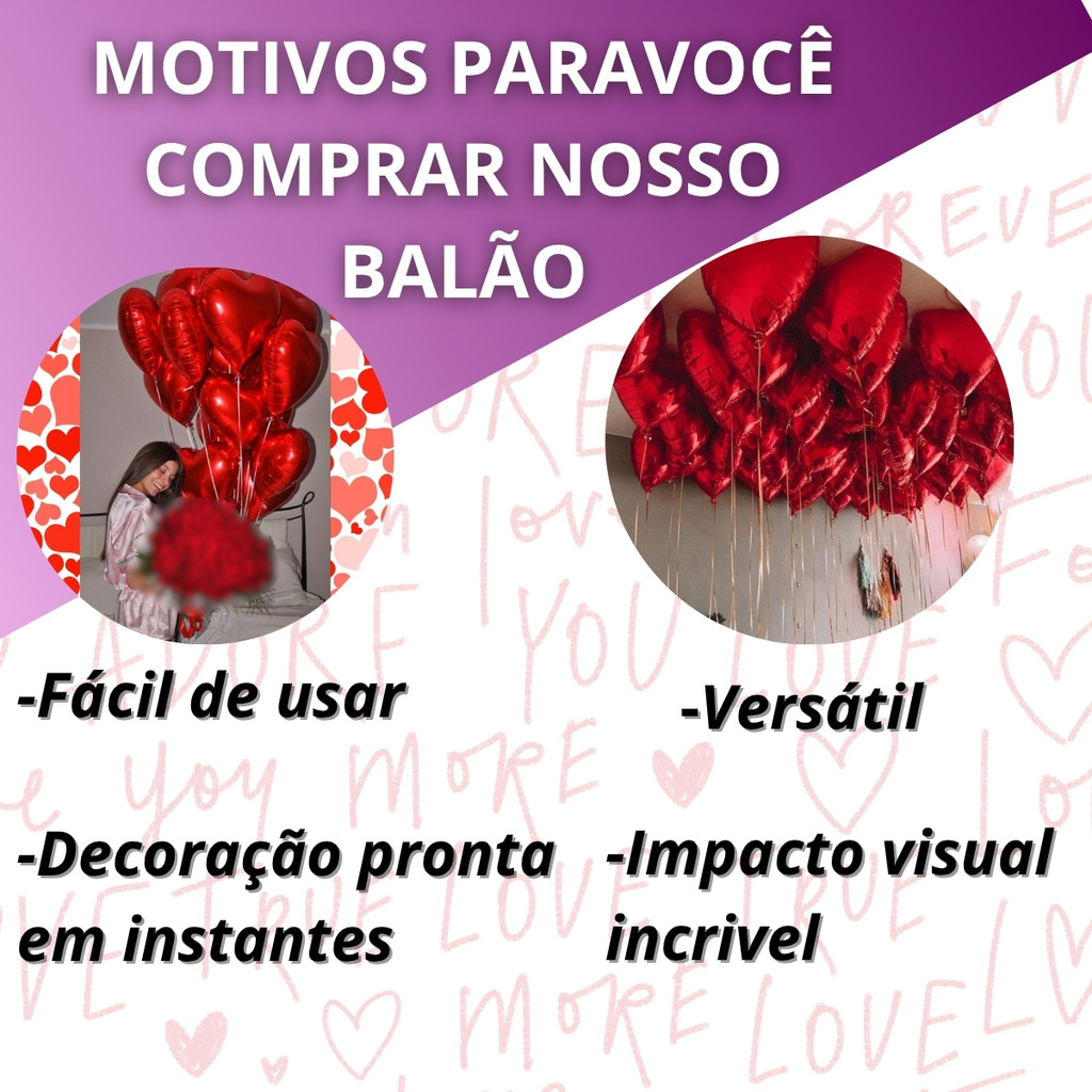 Balão Metalizado Coração 10 Pol Decoração Casamento Festas Aniversario 5/10/20/25un Amor Vermelho