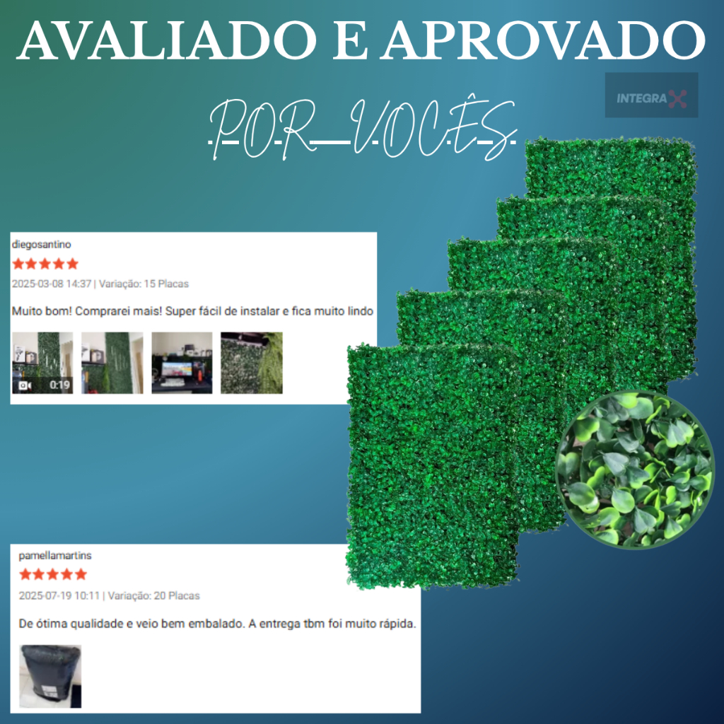 Kit 30 Placas Planta Artificial Parede 40X60 Buchinho Muro Ingles Natural Jardim Vertical