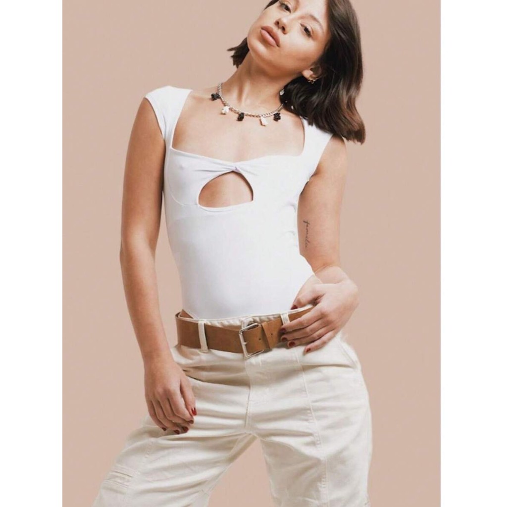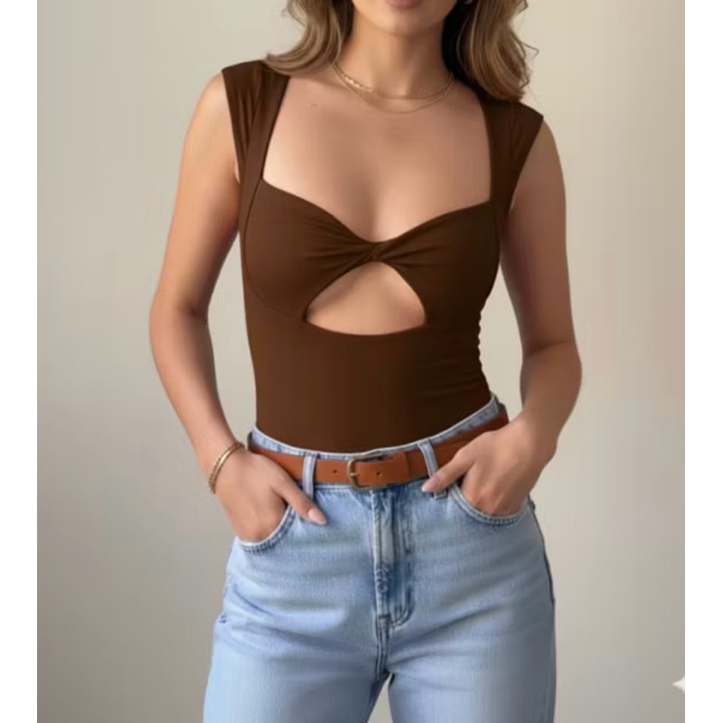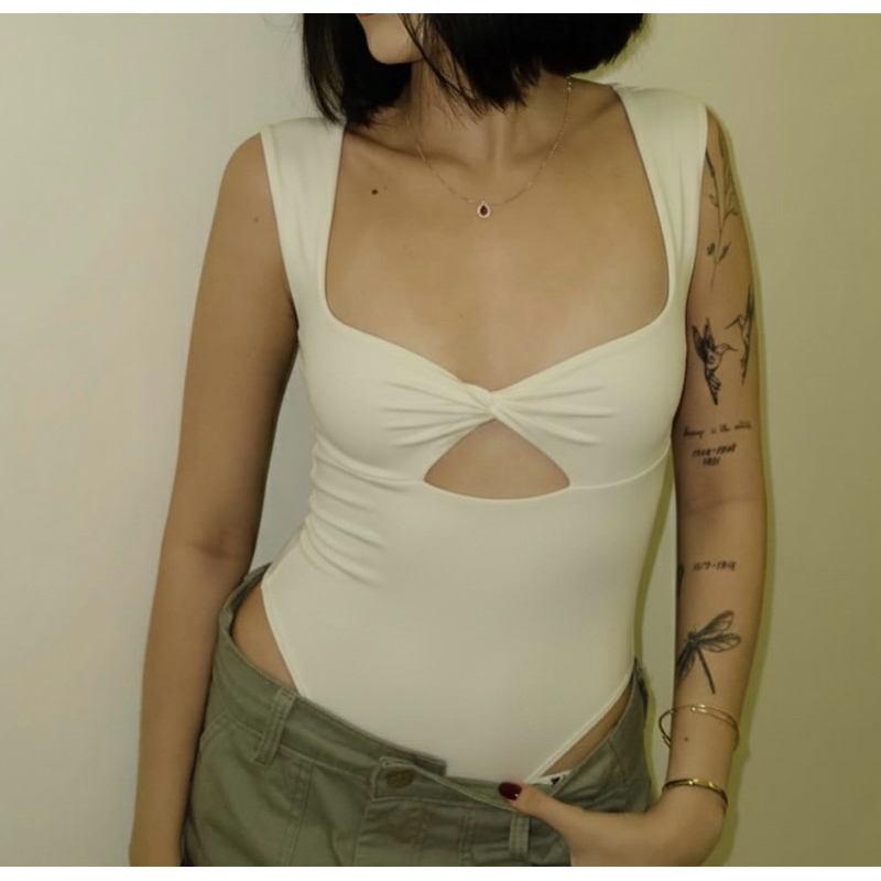 Body Feminino Decote Quadrado Nozinho Manga Curta Dupla Recorte Cavado Bodyfeminino