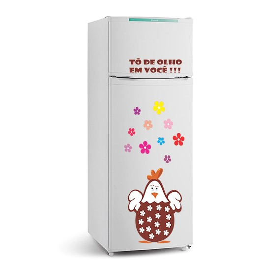 Adesivo Decorativo para Geladeira Armário Parede Porta Vidro Sala Quarto Cozinha tema Galinha Marrom e Flores Imaginart