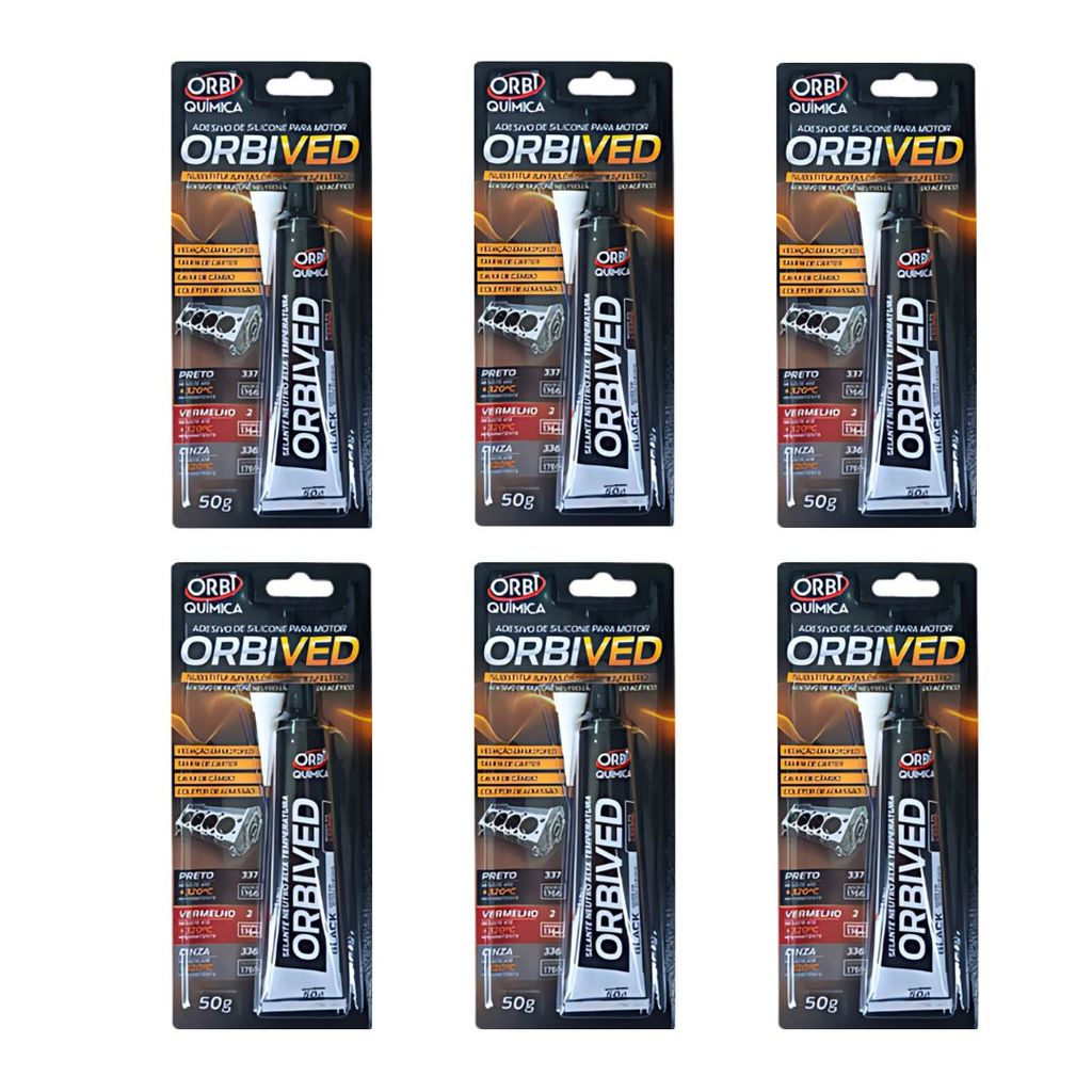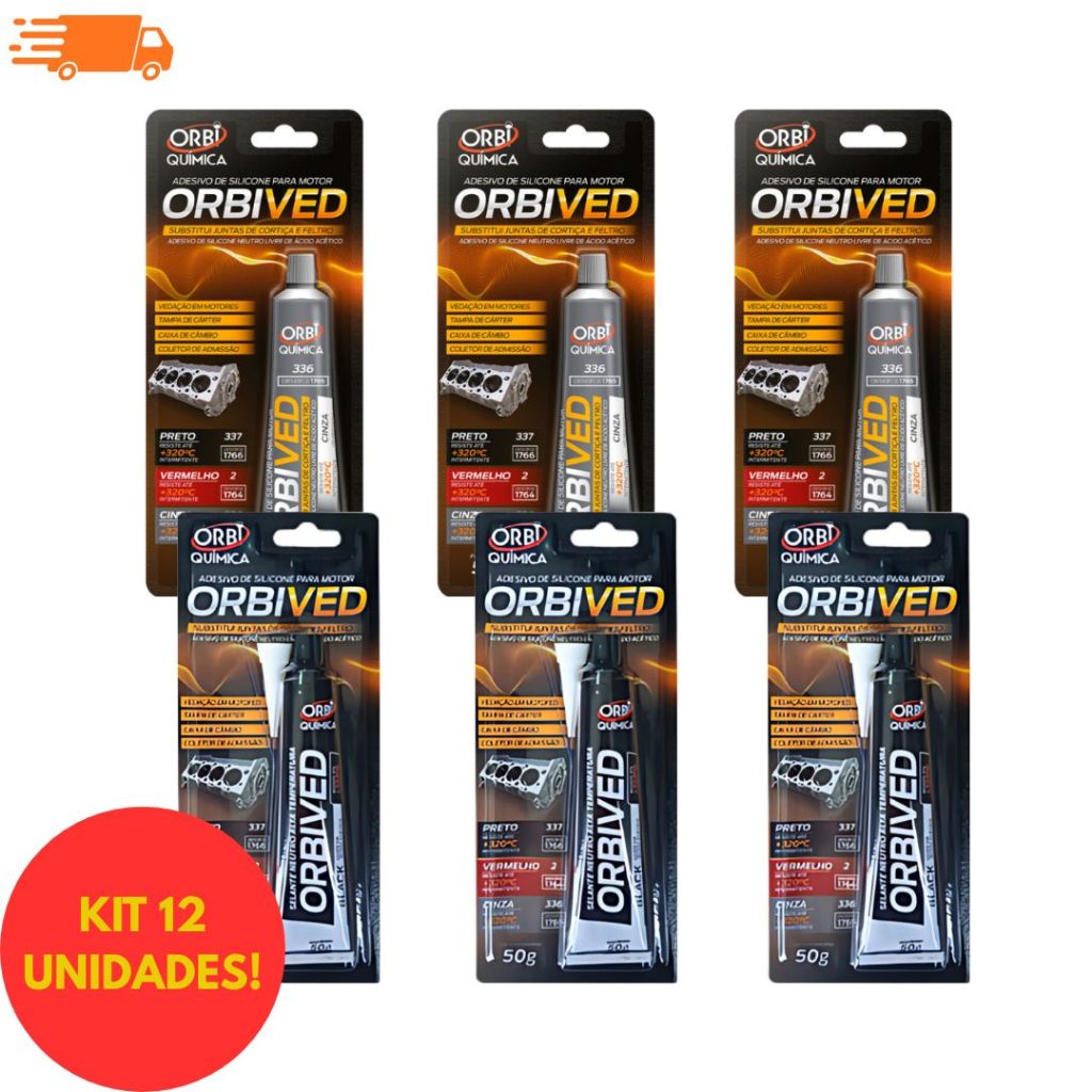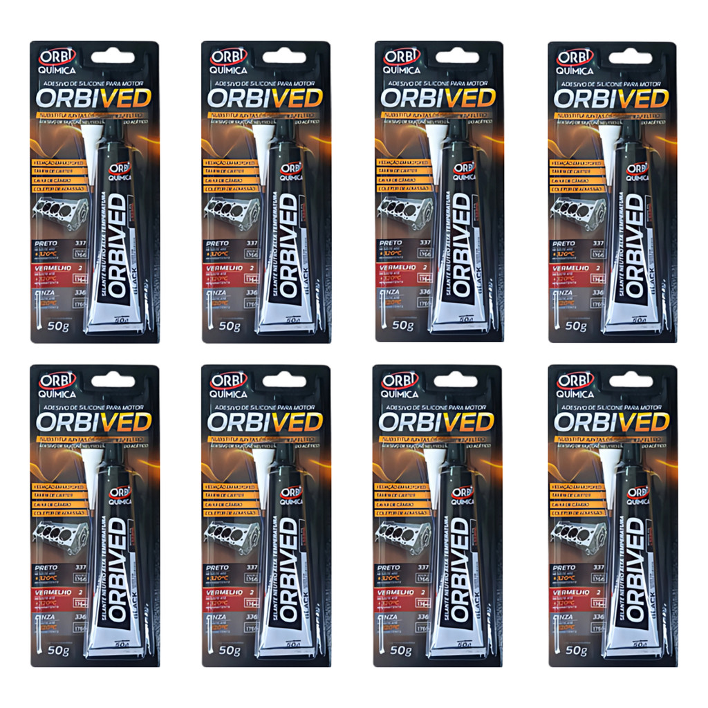 Silicone Alta Temperatura Selante Orbi Orbived Kit 4, 6, 10 ou 12 Unidades - Preto e Cinza