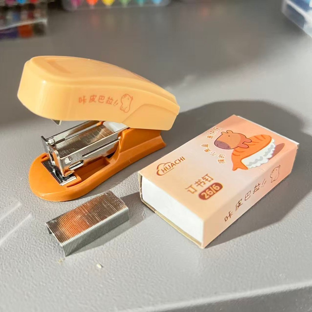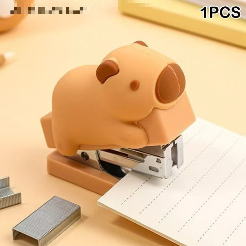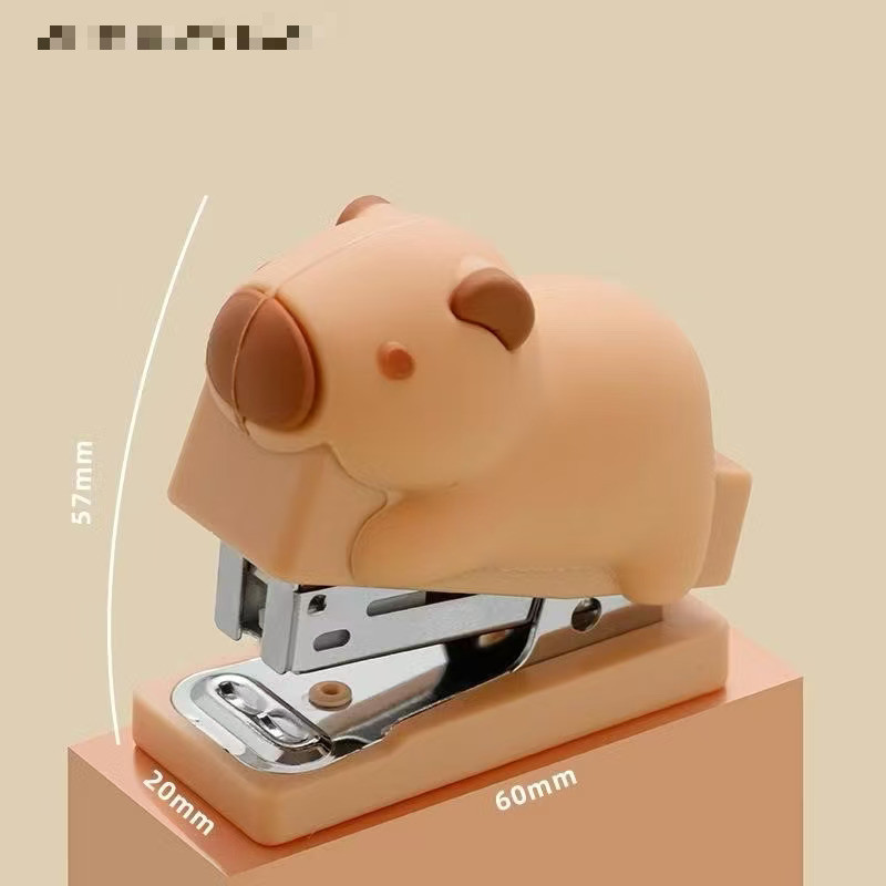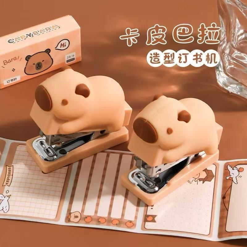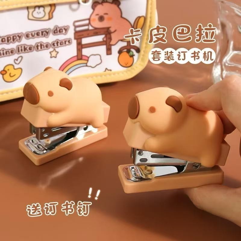 Grampeador Escritório + Grampos Capivara Papelaria Fofa Kwaii 400 Grampos 24/6 Ou 26/6