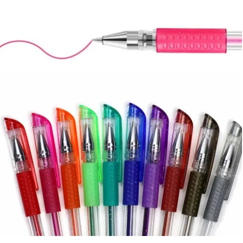 Kit Canetas gel colorida c/ glitter e aroma de frutas