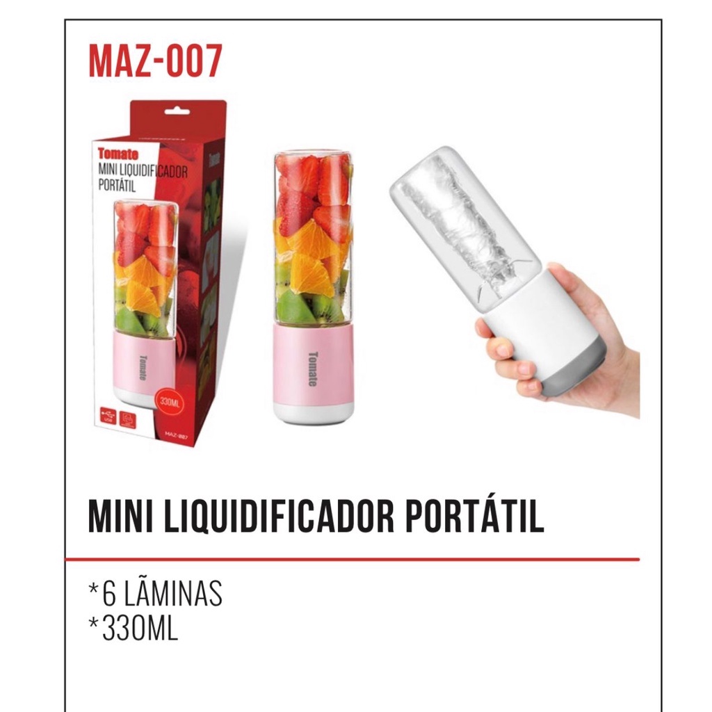 Mini Liquidificador Portátil Vidro 6 Lâminas Recarregável USB | Maz-007