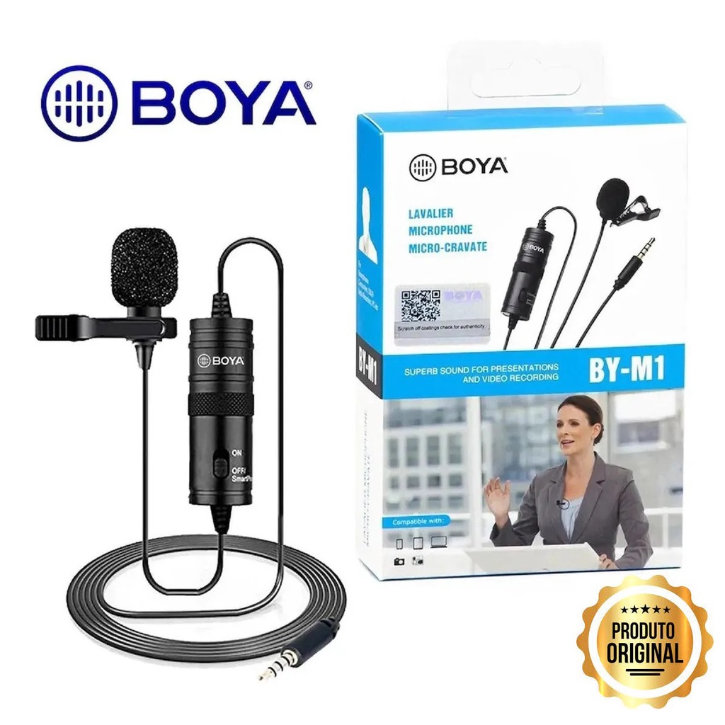 Microfone de Lapela Boya BY-M1 | Para Câmeras e Smartphones | Cabo 6m | Alta Qualidade