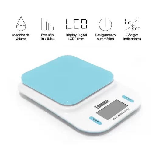 Balança Digital de Cozinha 15kg SF-440 Tomate | Alta Precisão 1g | Display LCD