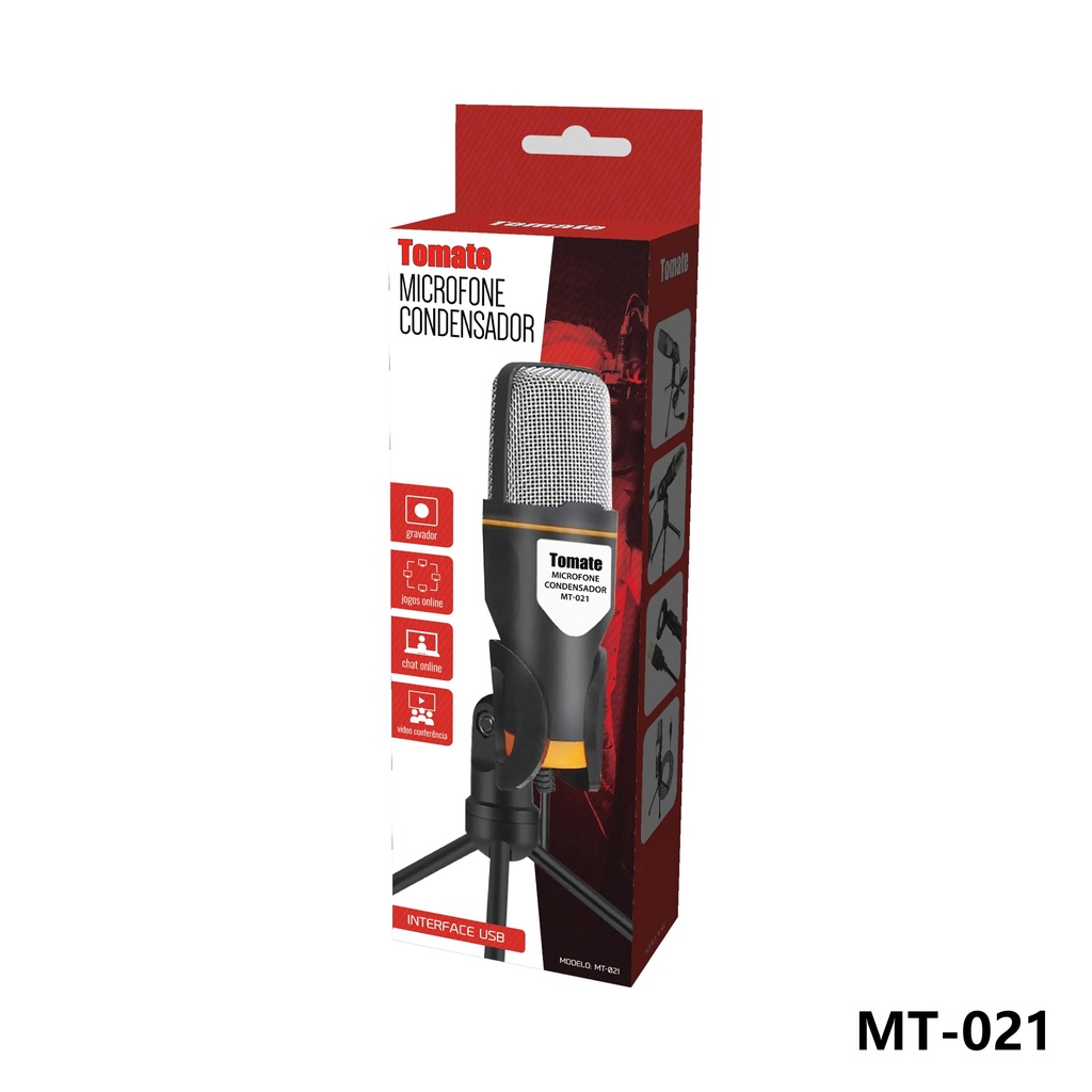 Microfone Condensador USB/P2 Com Tripé | Para PC, Live, Jogos e Podcast