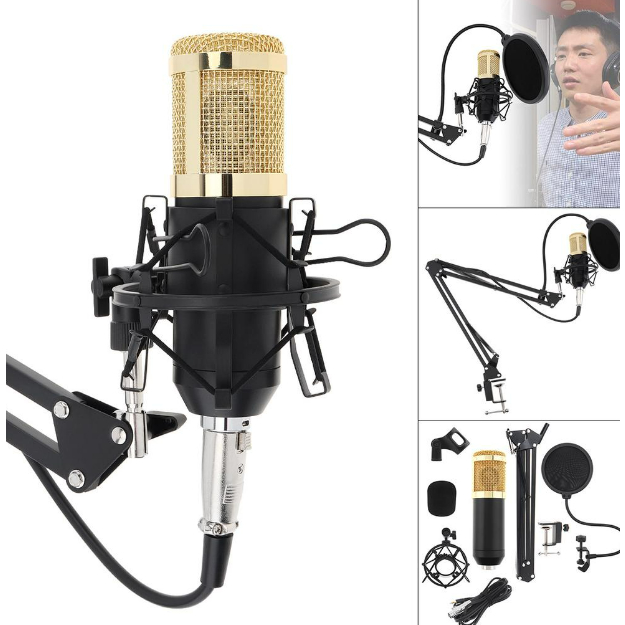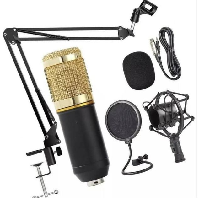 Kit Microfone Condensador Pro + Pedestal Pop Filter Espuma LEBOOS