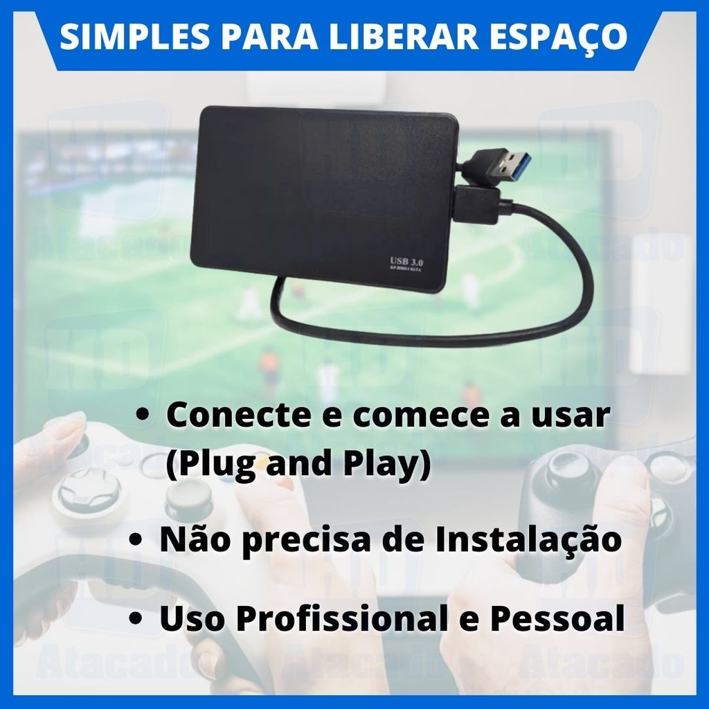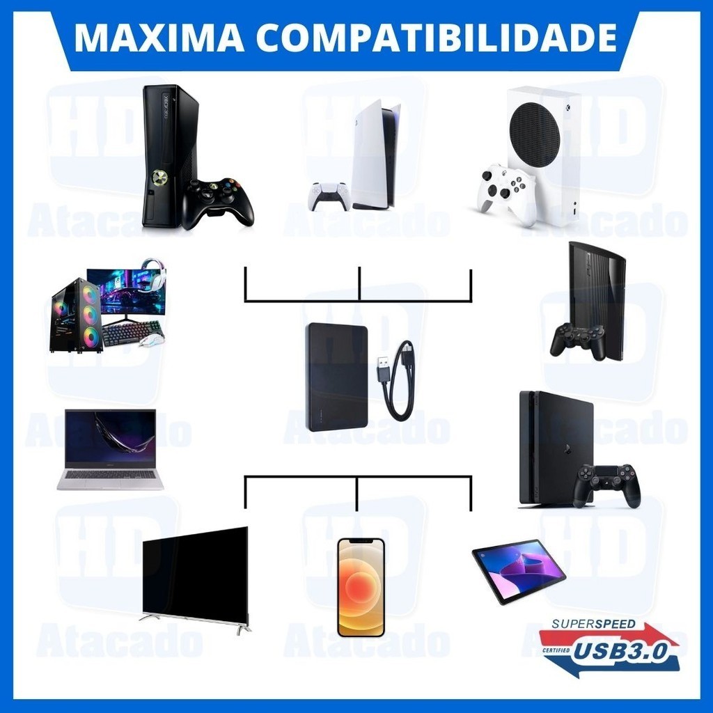 HD Externo 2TB USB 3.0 SSD Portátil de Xbox, PS5, Console, PC - NF e Garantia