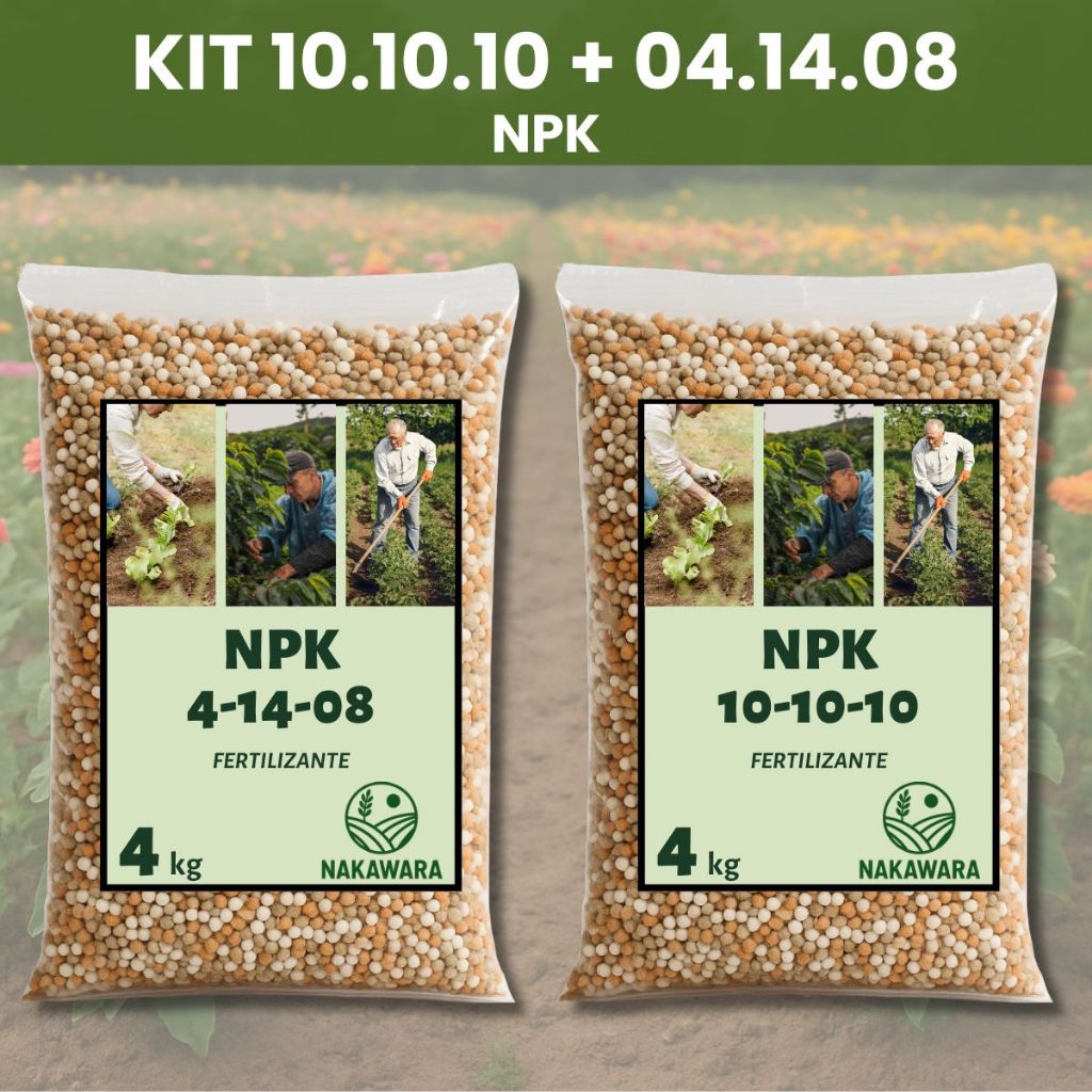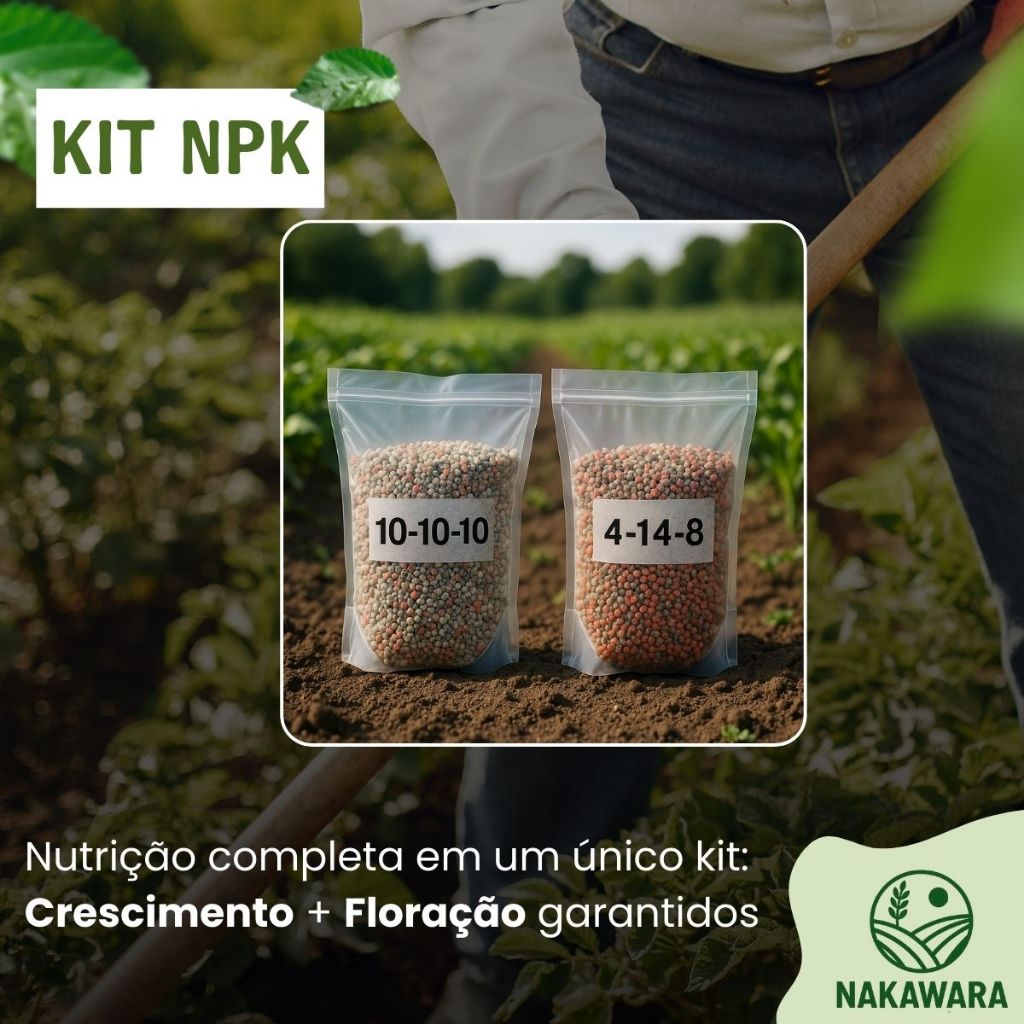 Kit Adubo NPK 10-10-10 + 04-14-08 Fertilizante Crescimento Floração Hortas Jardins Plantas Flores
