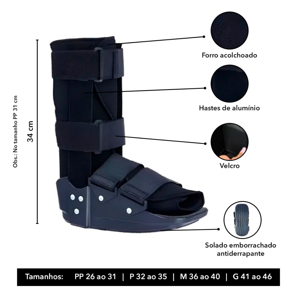 Bota Ortopédica Imobilizadora Curta Ambidestro