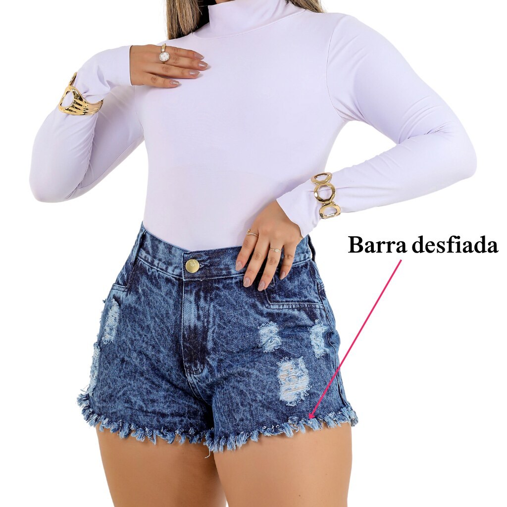 Short Jeans Feminino Soft Barra Desfiada Cintura Alta Marmorizado, EMS ESTILO