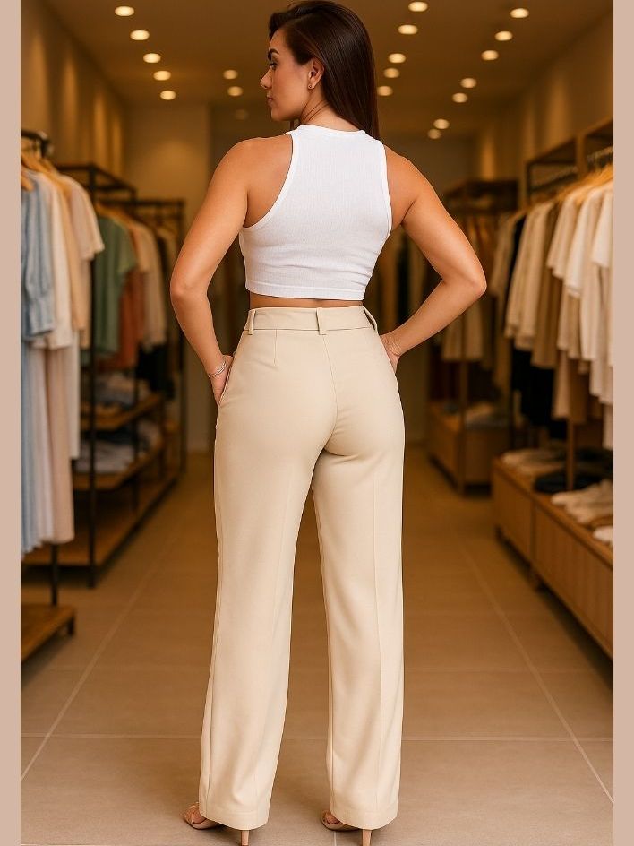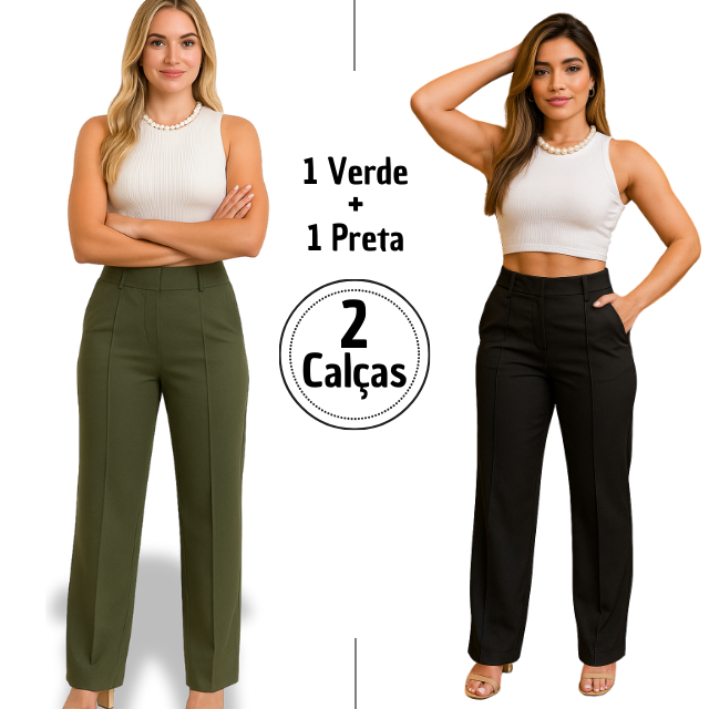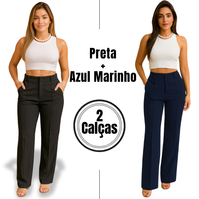 KIT 2 Calças Social Pantalona Alfaiataria Cintura Alta Feminina Elegante Social com bolso PROMOCAO
