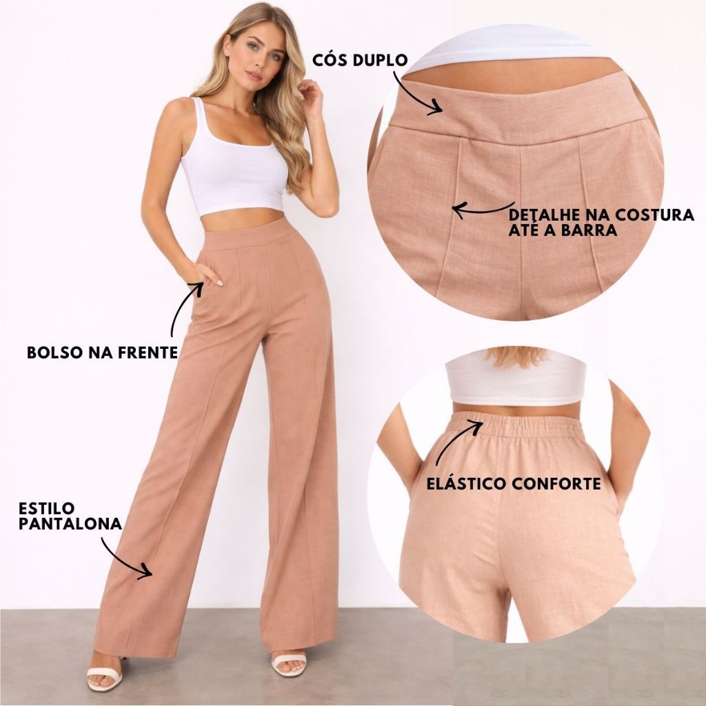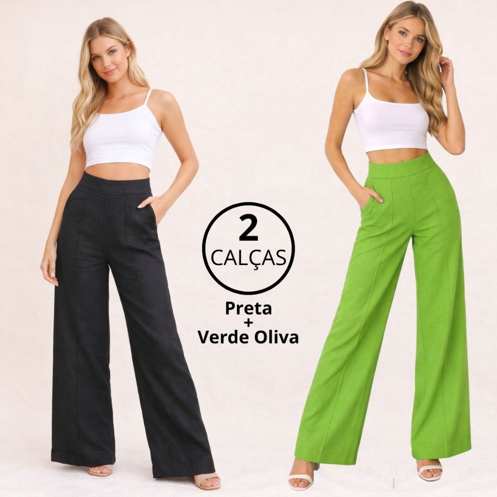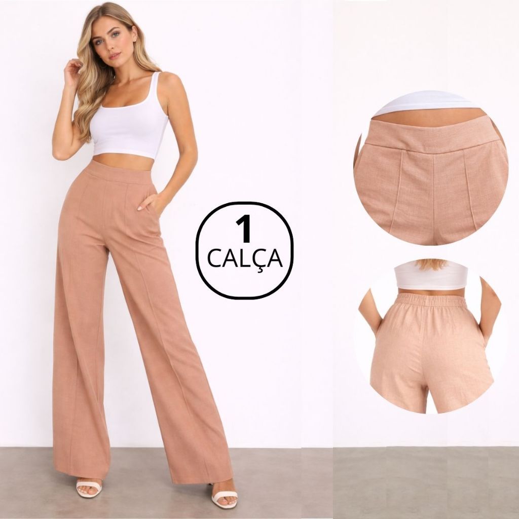 Kit Pantalona de LINHO com bolso Cintura Alta Elegante PROMOCAO