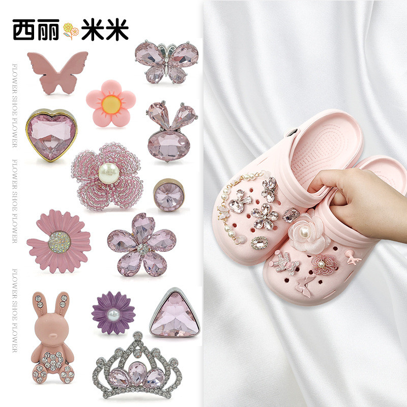 Conjunto de Acessórios para Sandálias DIY com Coração Rosa Milad, Flor, Urso, Fivela de Strass e Corrente