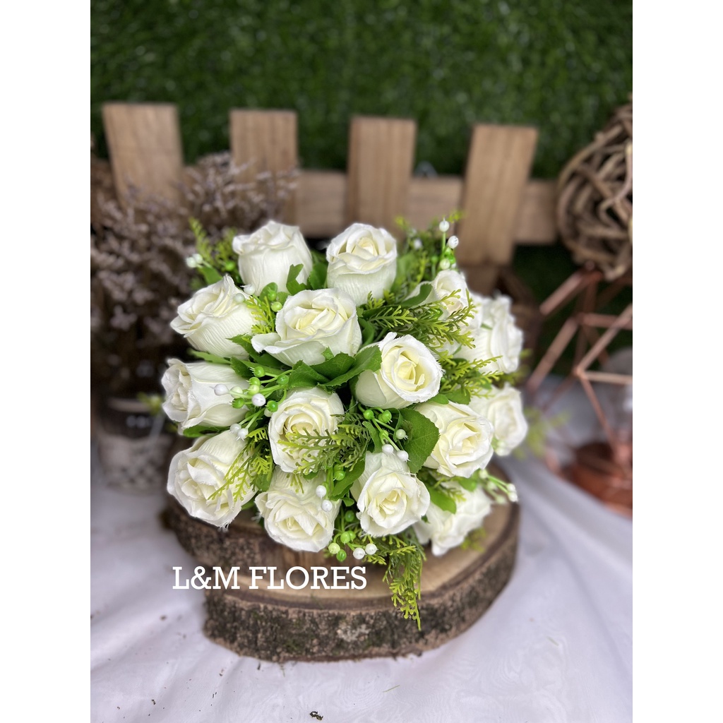 Buquê de Noiva feito de flores artificiais com 15 flores para casamentos