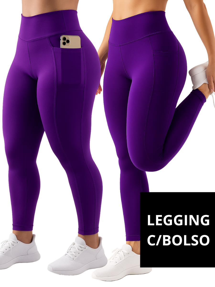 Calça Legging Feminina com Bolso Lateral Zero Transparência Cintura Alta