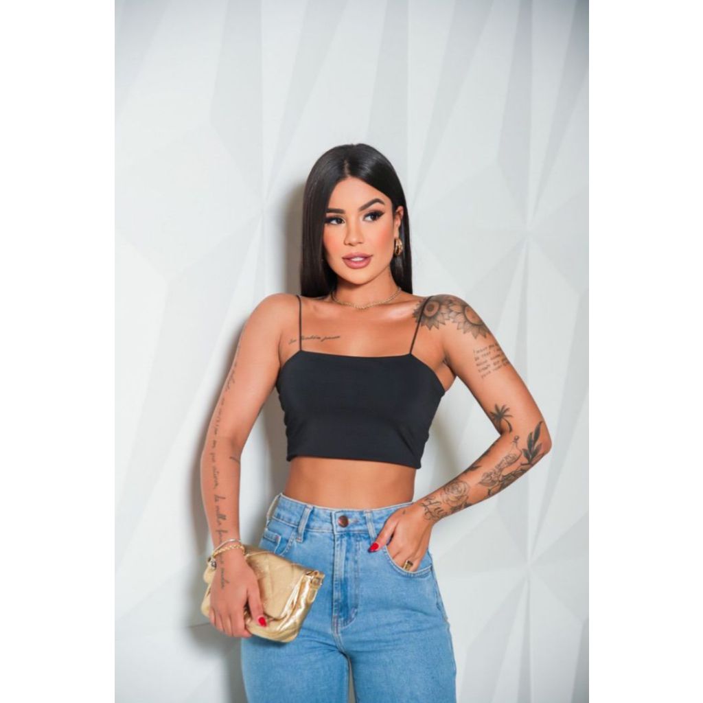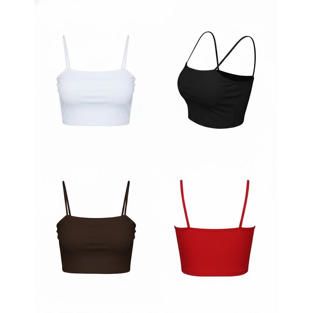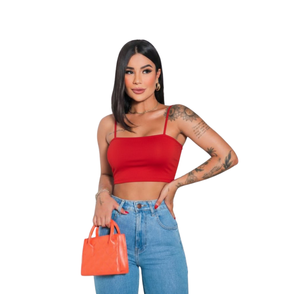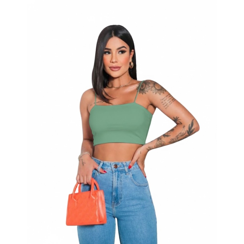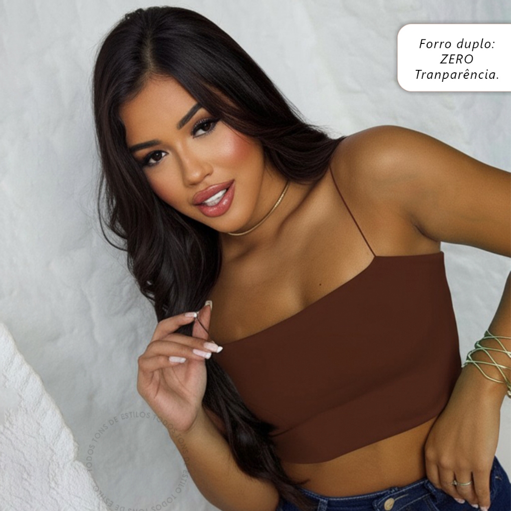 Kit 4 Cropped Top Faixa Alças Finas Forro Duplo Suplex Premium Confortável