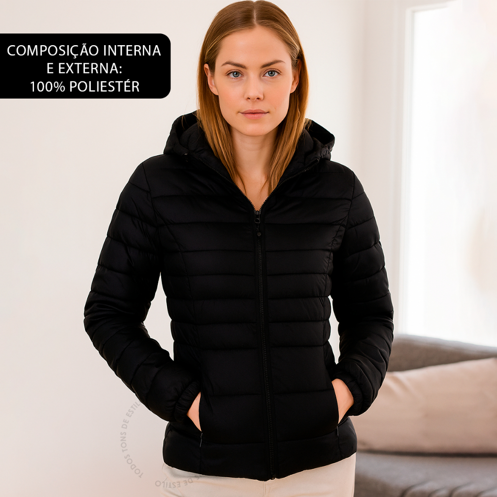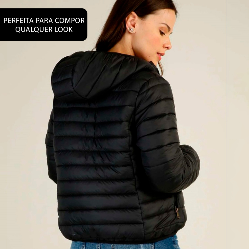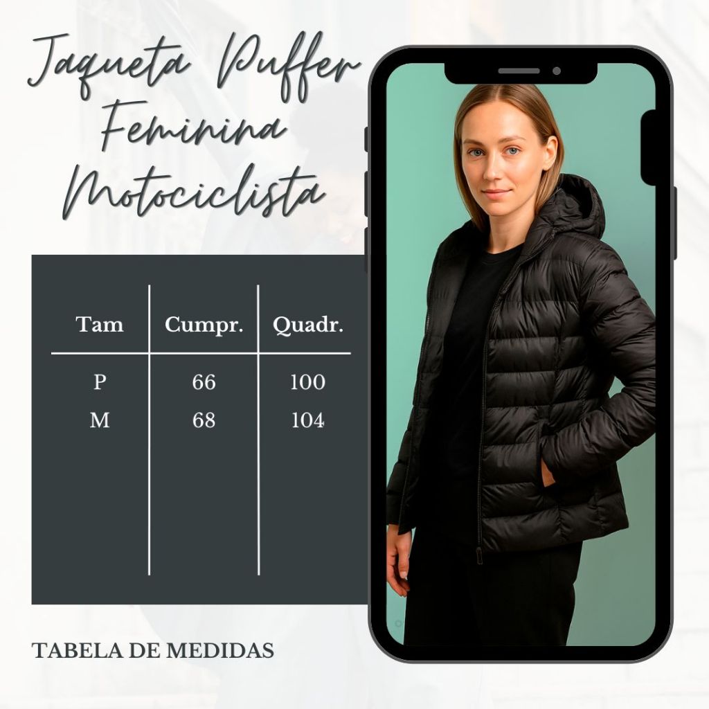Jaqueta Puffer Feminina Motociclista Impermeável Blusa Frio Bobojaco Inverno Capuz