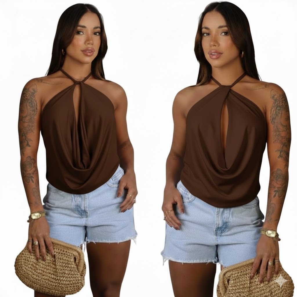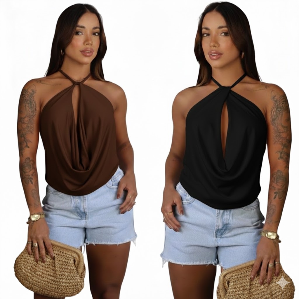 Kit 2 Blusa Feminina Multiformas Cropped Frente Unica Costas Nua Top Faixa Decote Amarrar no Pescoço
