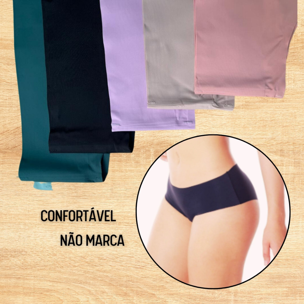KIT 5/3 Calcinhas feminina Lisa Sem Costura Corte a Laser Cintura Alta cós duplo Moda Intima