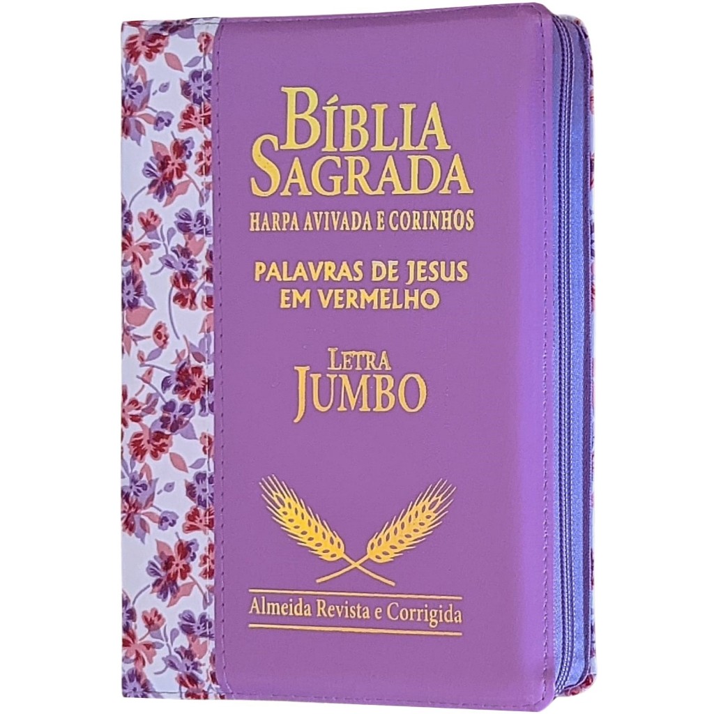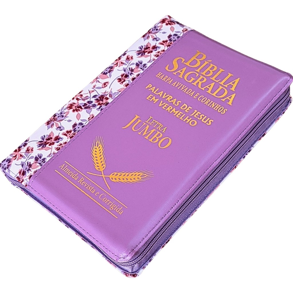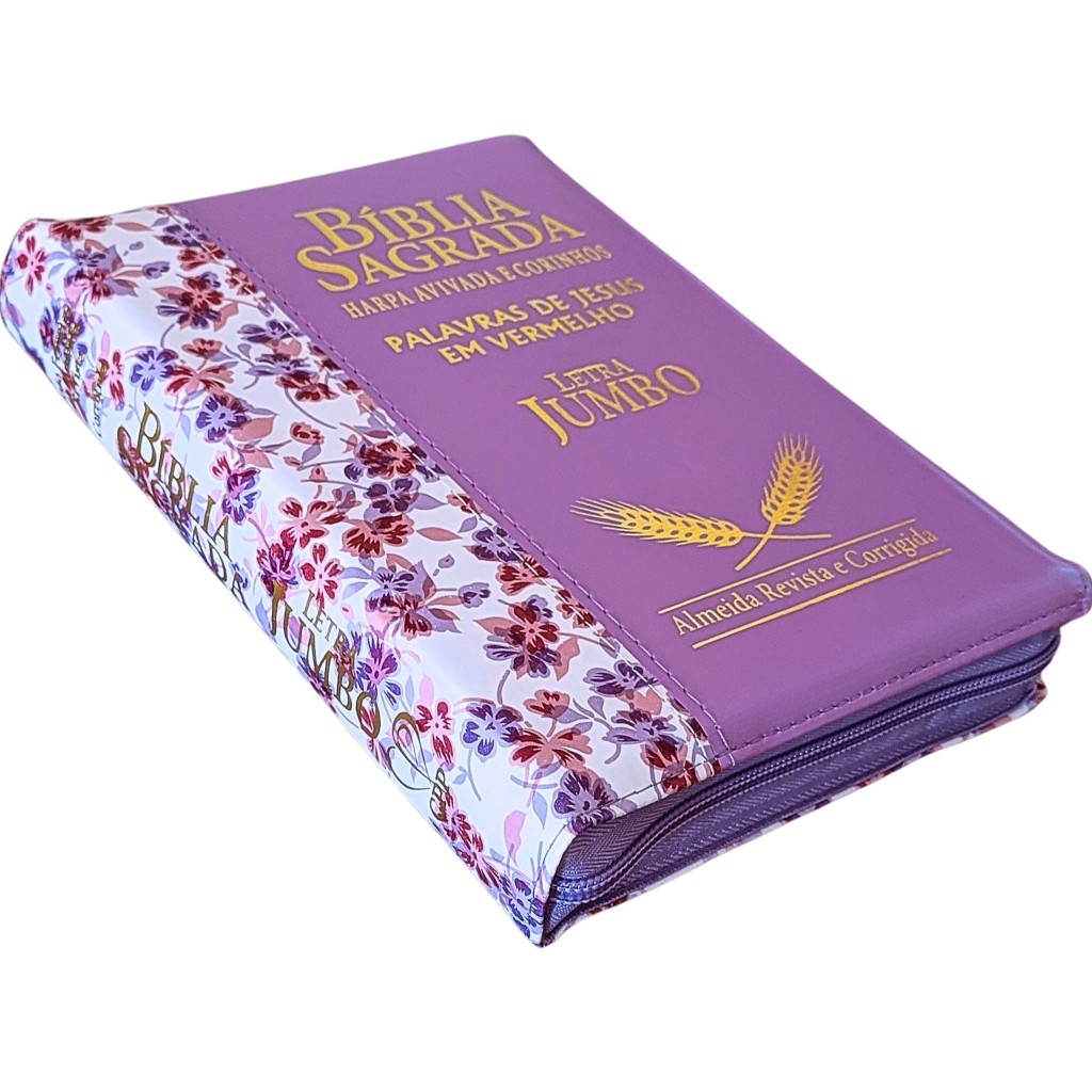Bíblia Sagrada Letra Jumbo com Harpa Feminina Zíper Flores Índice Almeida Corrigida Feminina Florida Rosa