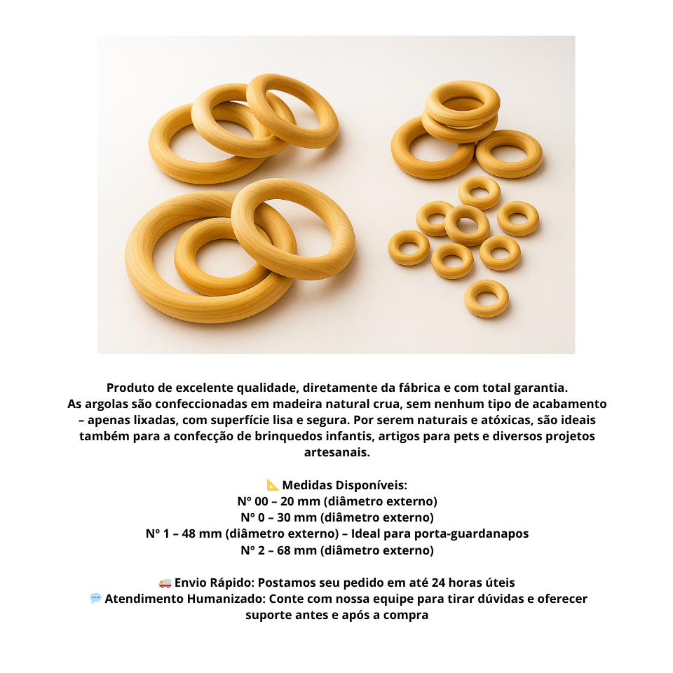 Argola Crua de Madeira 100 a 25 Unidades– Artesanato, Laços, Amigurumi e Projetos Manuais