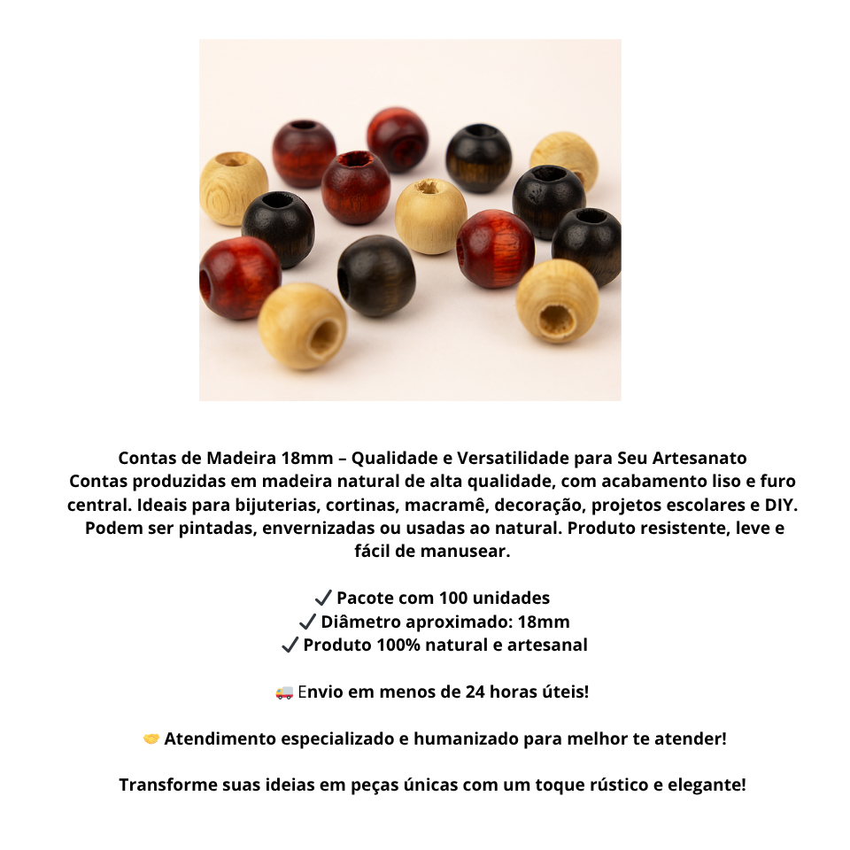Contas de Madeira 18mm – Crie com Qualidade | Artesanato, Bijuterias e Decoração