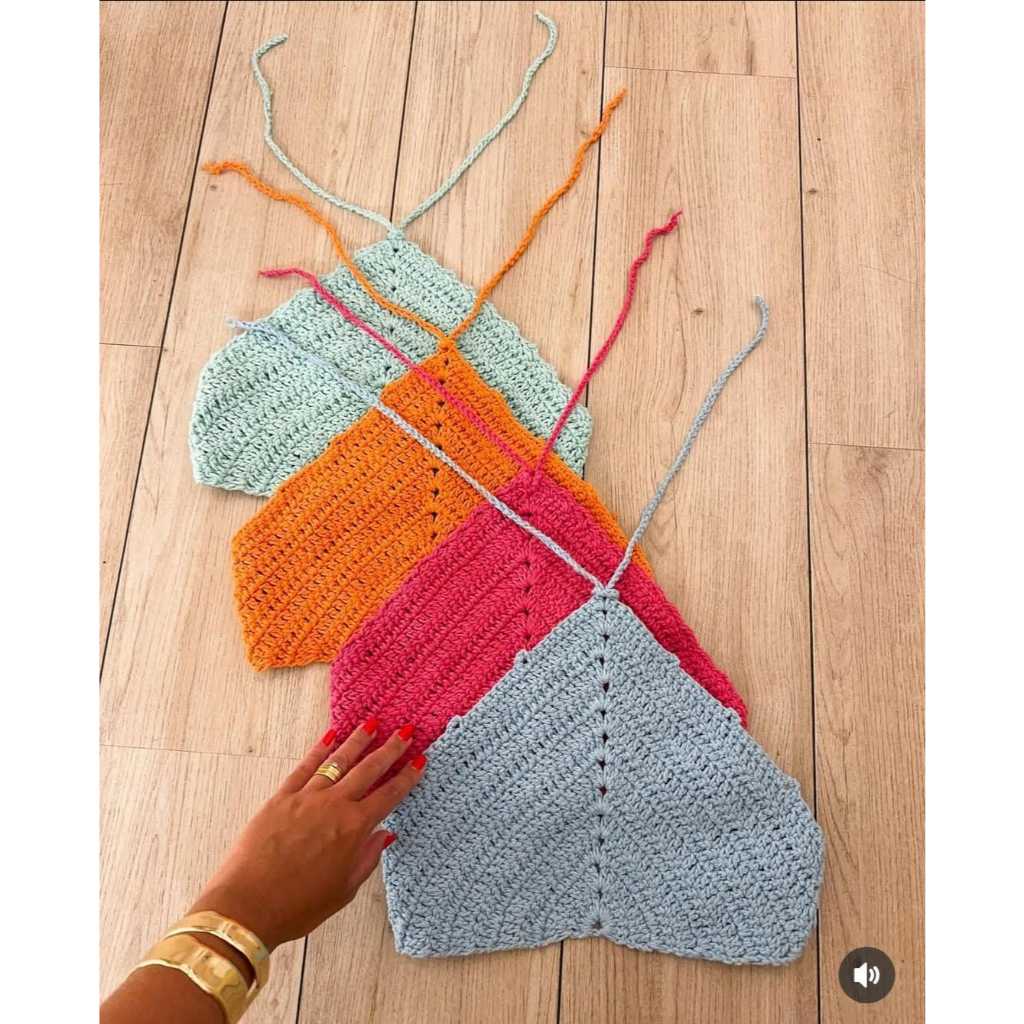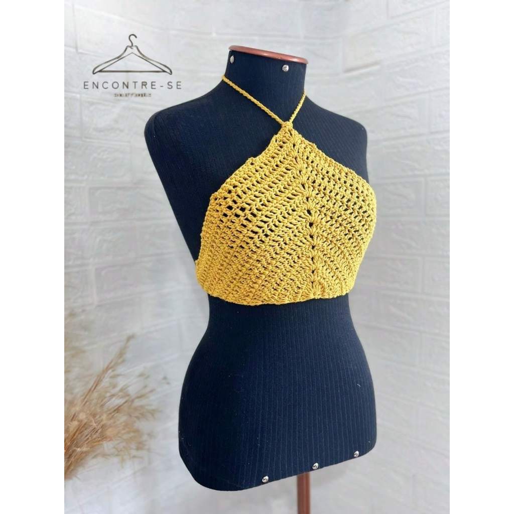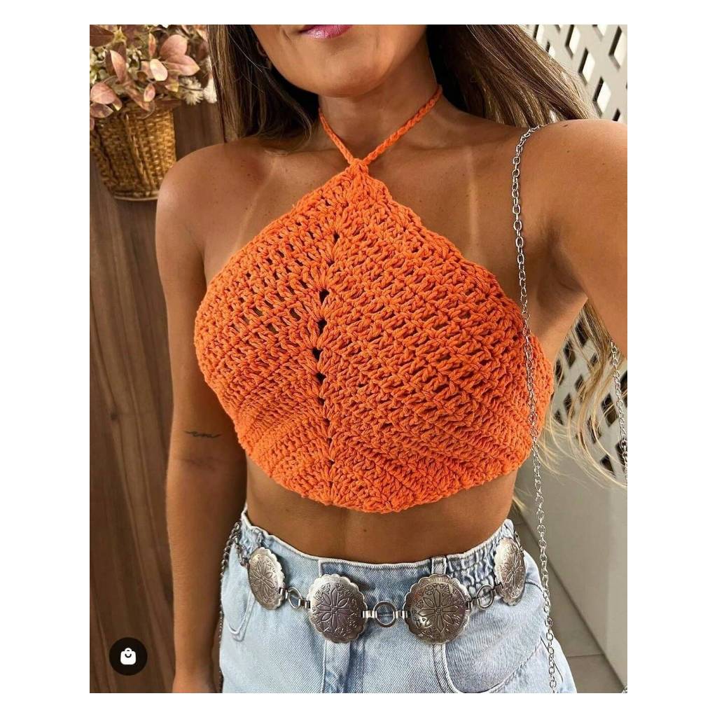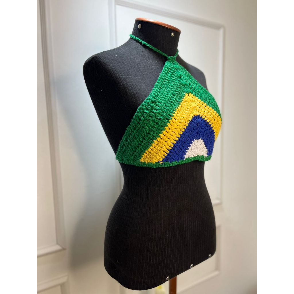 Cropped Crochê Brasil Feito a Mão Croped Feminino Tricot Artesanal Triangulo Costas Nua Verão Copa