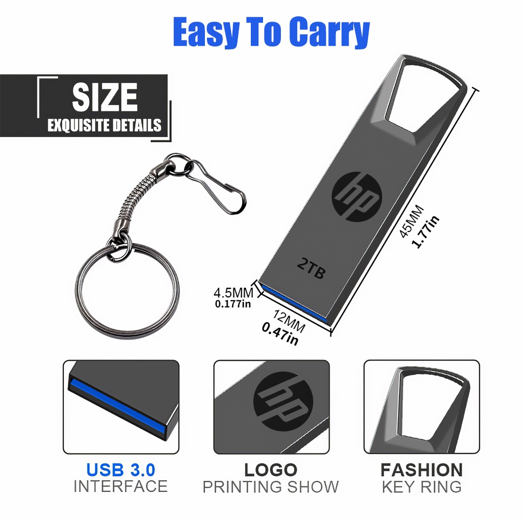 HP Metal Pen Drive 128 GB/256GB/512GB/1 Tb/2TB Portabel USB Flash De Alta Velocidade Memory Stick 3.0 De Dados À Prova D'água Com OTG E Keychain