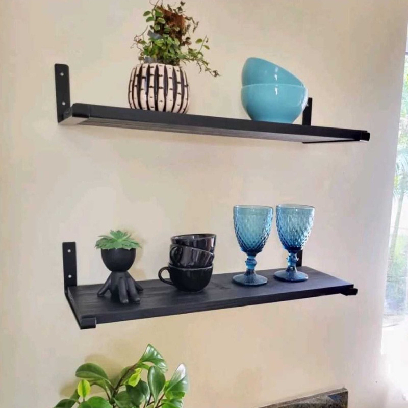 Prateleira Industrial Com Mão francesa de ferro invertida Nicho Decoração rustica