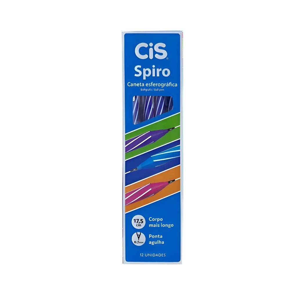 Caneta Esferográfica Cis Spiro Azul Caixa C 12 Unidades