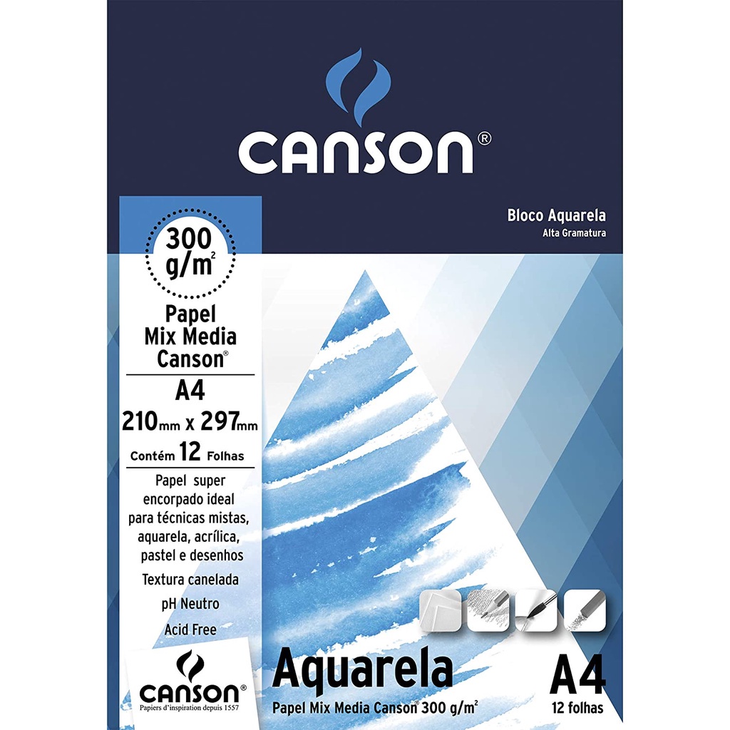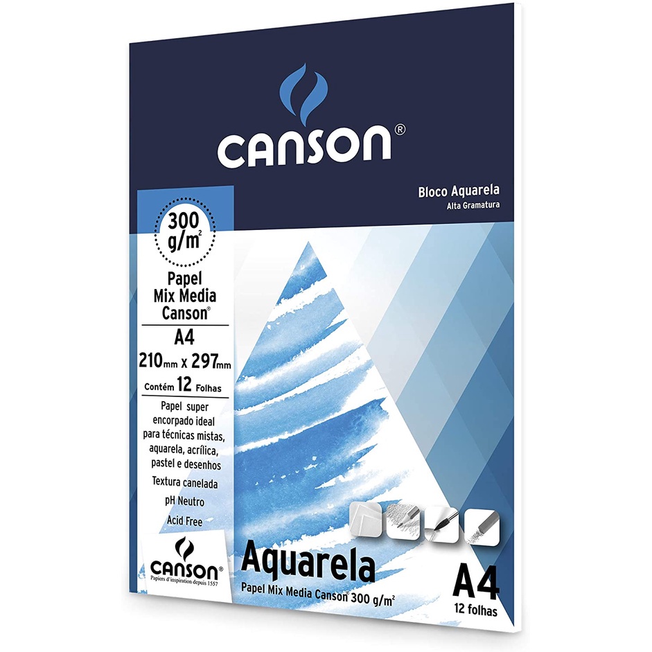 Bloco Para Aquarela Canson A4 300g/m² 12 folhas