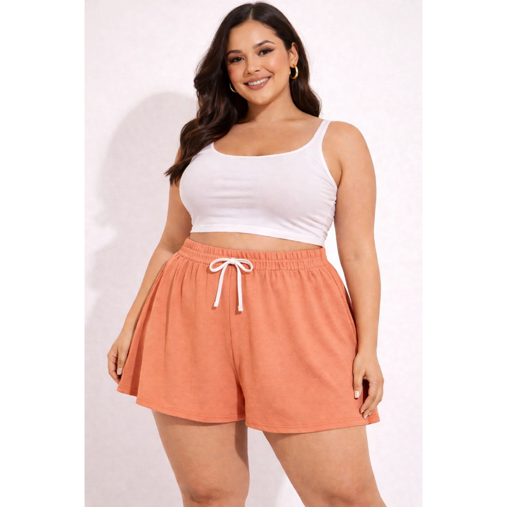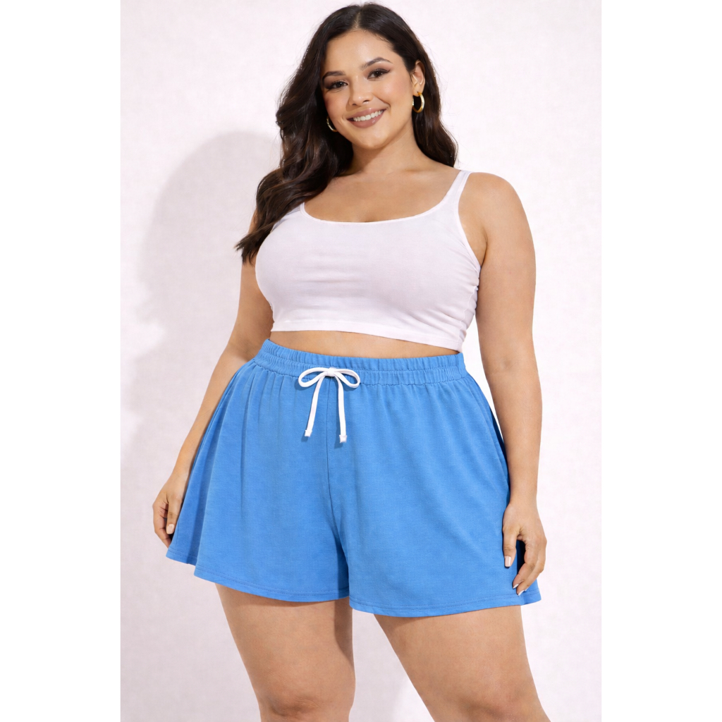 Shorts Feminino Plus Size Godê em Malha Viscolycra Confortável Básico